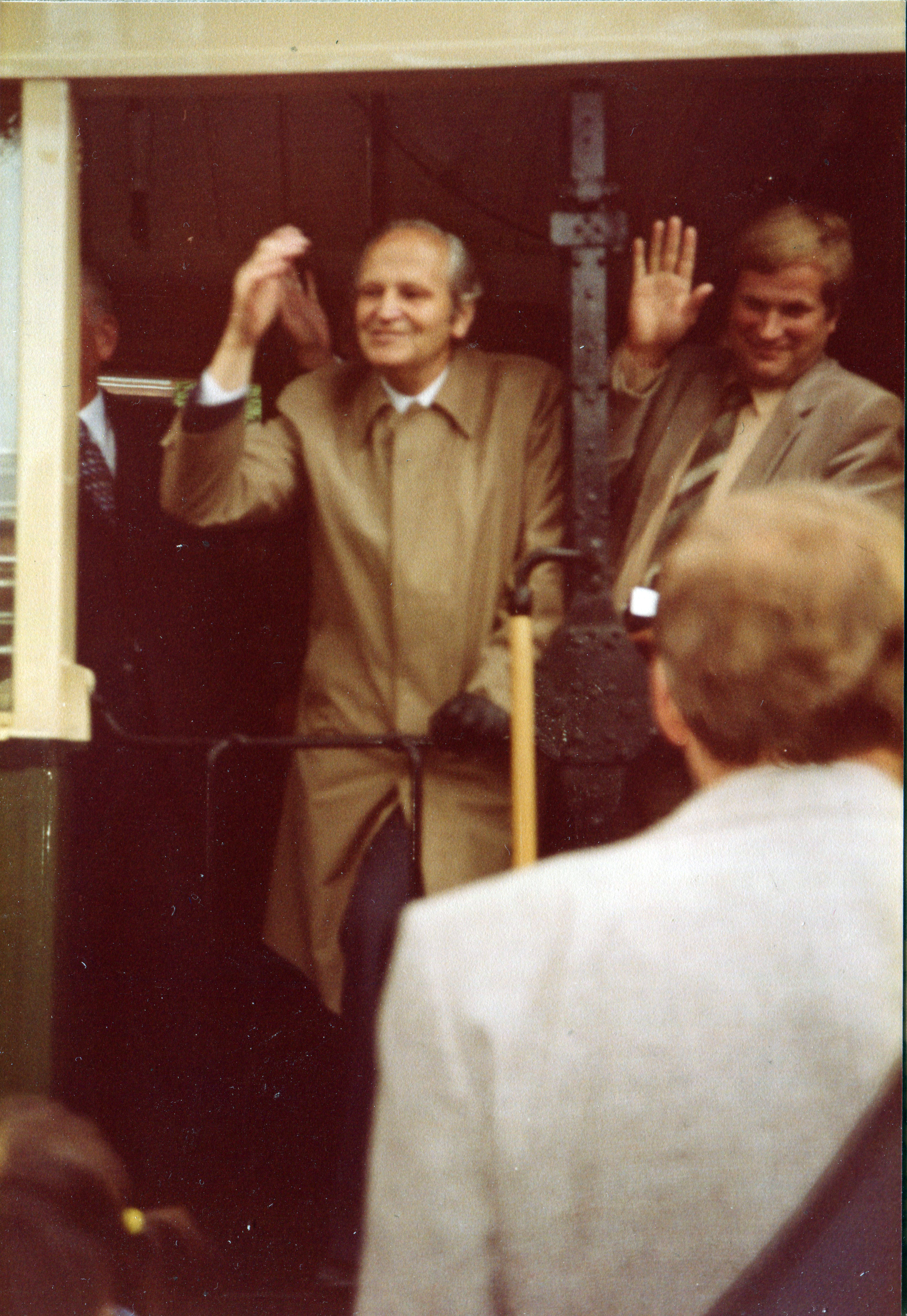 | Beschreibung | Oberbürgermeister Kurt Scherzer und Stadtrat Günter Hefele in der letzten Straßenbahnfahrt in Fürth am 20. Juni 1981, links im Bild (abgeschnitten) der Nürnberger OB Andreas Urschlechter | ||