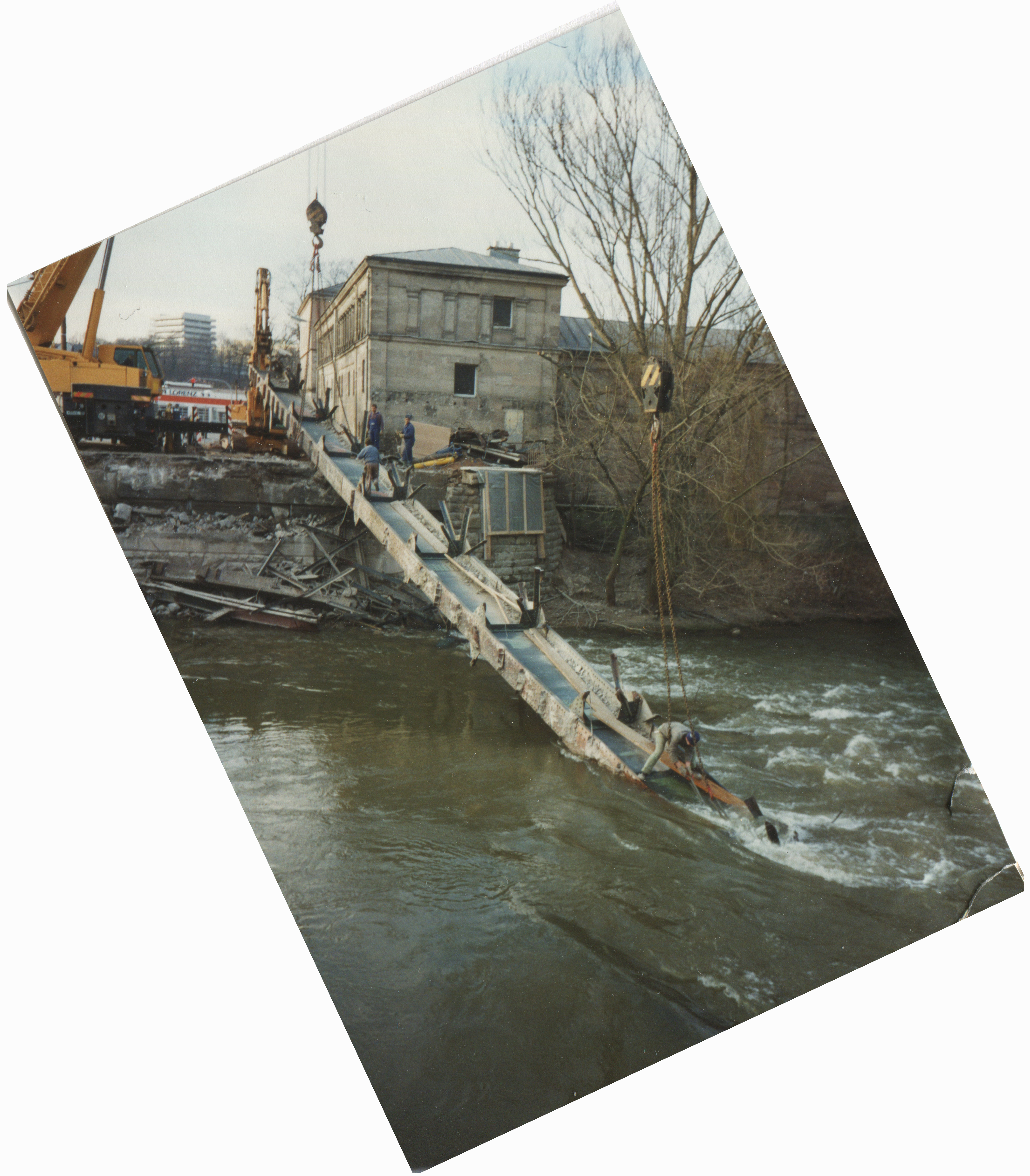 | Beschreibung | Abbrucharbeiten an der alten Maxbrücke während der Bauzeit der U-Bahnhaltestelle Stadthalle vor dem heutigen Kulturforum, Feb. 1997 | ||