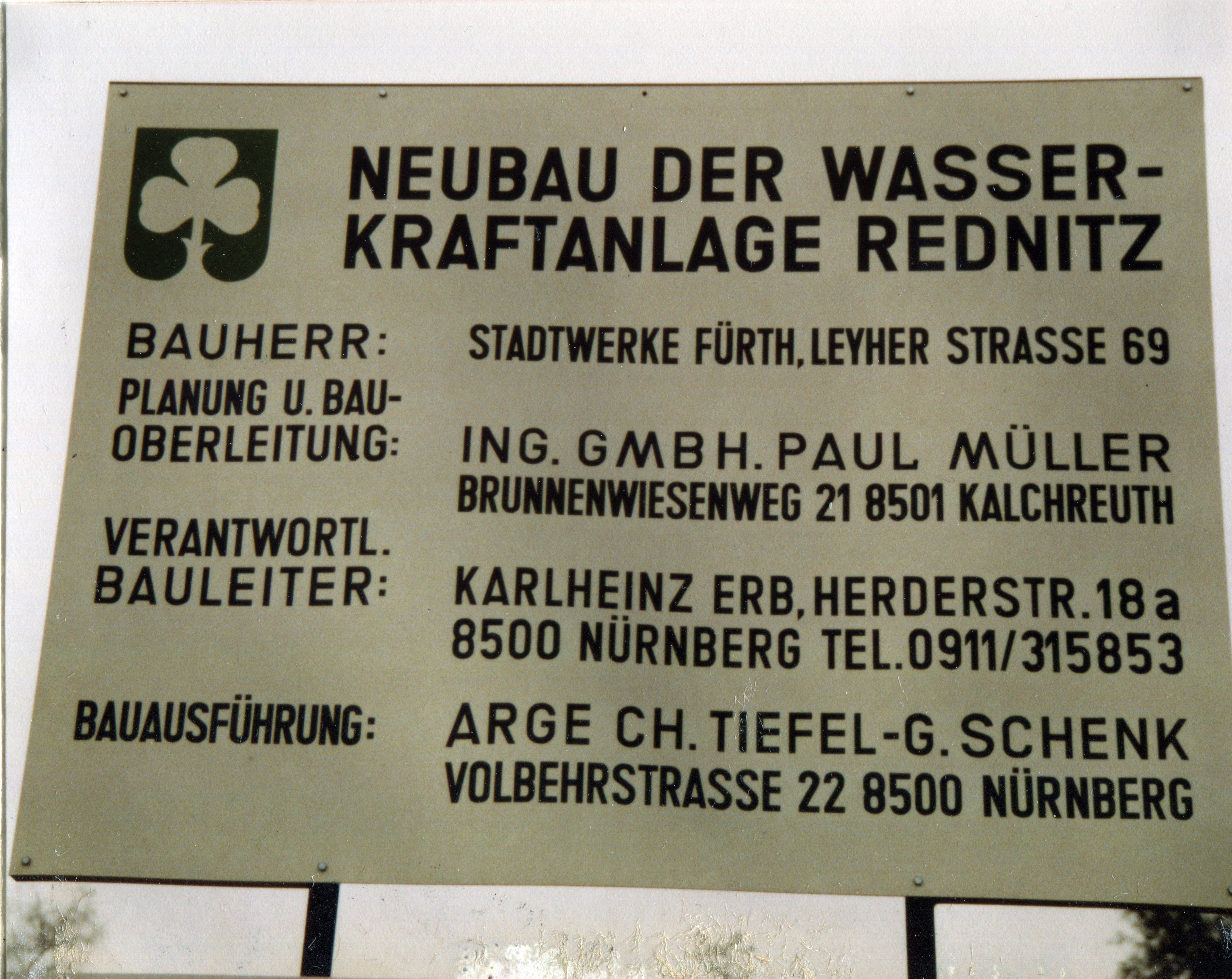 | Beschreibung | Bautafel zur Stau- und Triebwerksanlage an der Foerstermühle, Jan. 1989 | ||