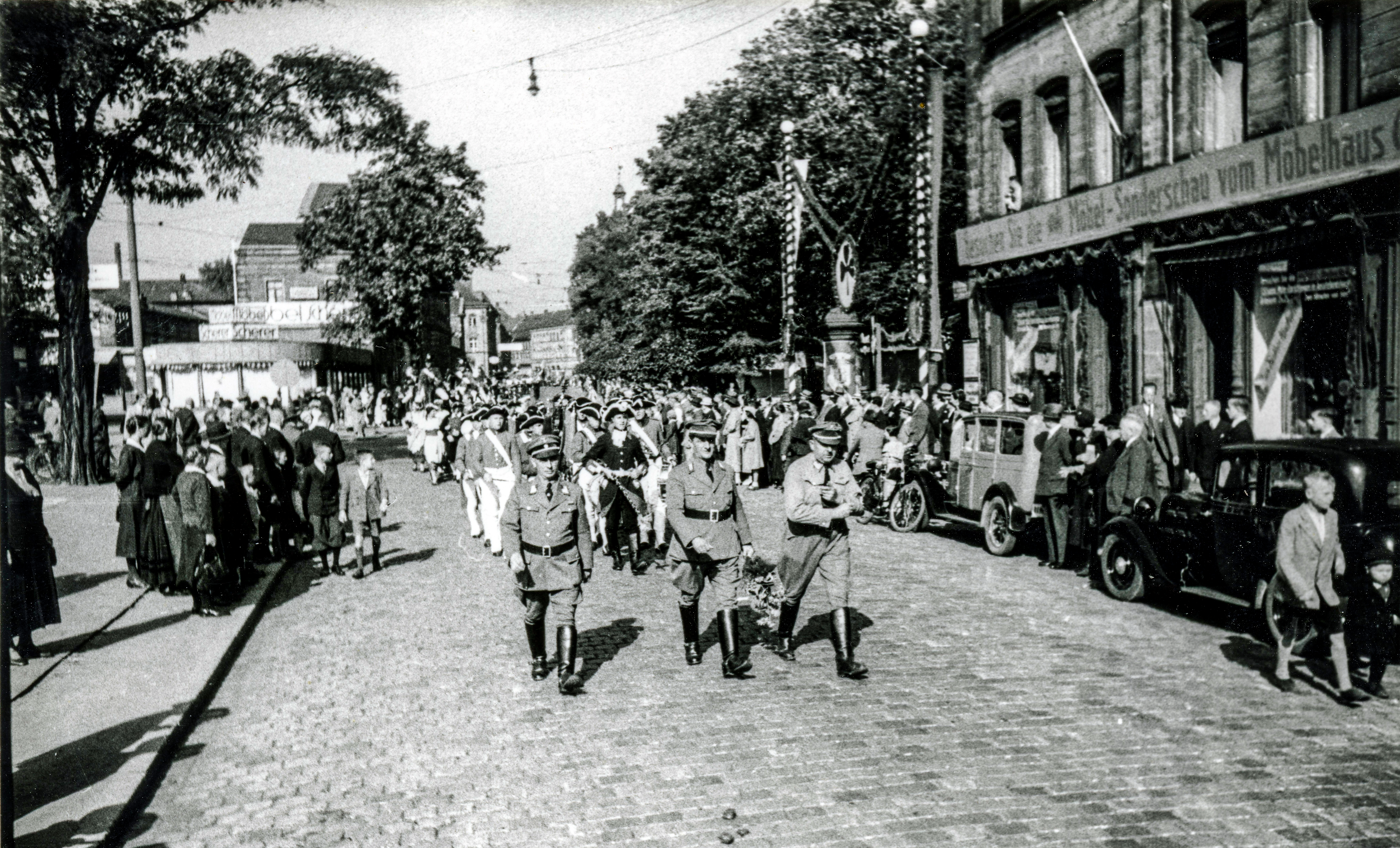 | Dateiinfo (Bild-Unterschrift und Info-Box, automatisch erstellt) | Umzug zur Michaeliskirchweih - hier mit lokalen NS-Größen wie Hans Sandreuter (Bildmitte), im ... Umzug zur Michaeliskirchweih - hier mit lokalen NS-Größen wie Hans Sandreuter (Bildmitte), im Hintergrund der ehem. Ludwigsbahnhof vor dem Abriss, 1935<br>Urheber: unbekannt<br><br>Lizenz: CC BY-SA 3.0 | ||