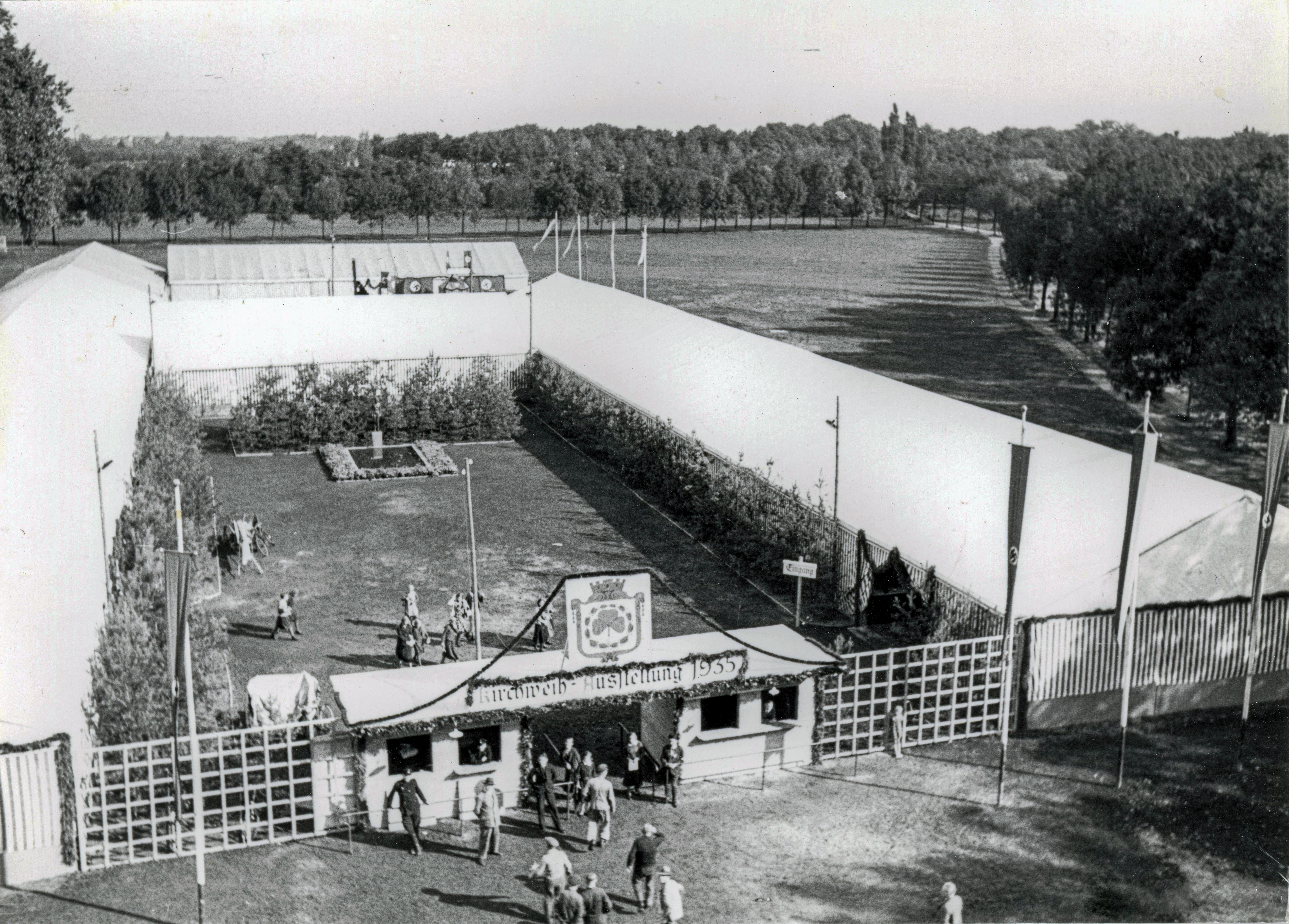 | Beschreibung | Kirchweih-Ausstellung über Stadt und Land Fürth während der Kirchweih am Schießanger, 1935 | ||