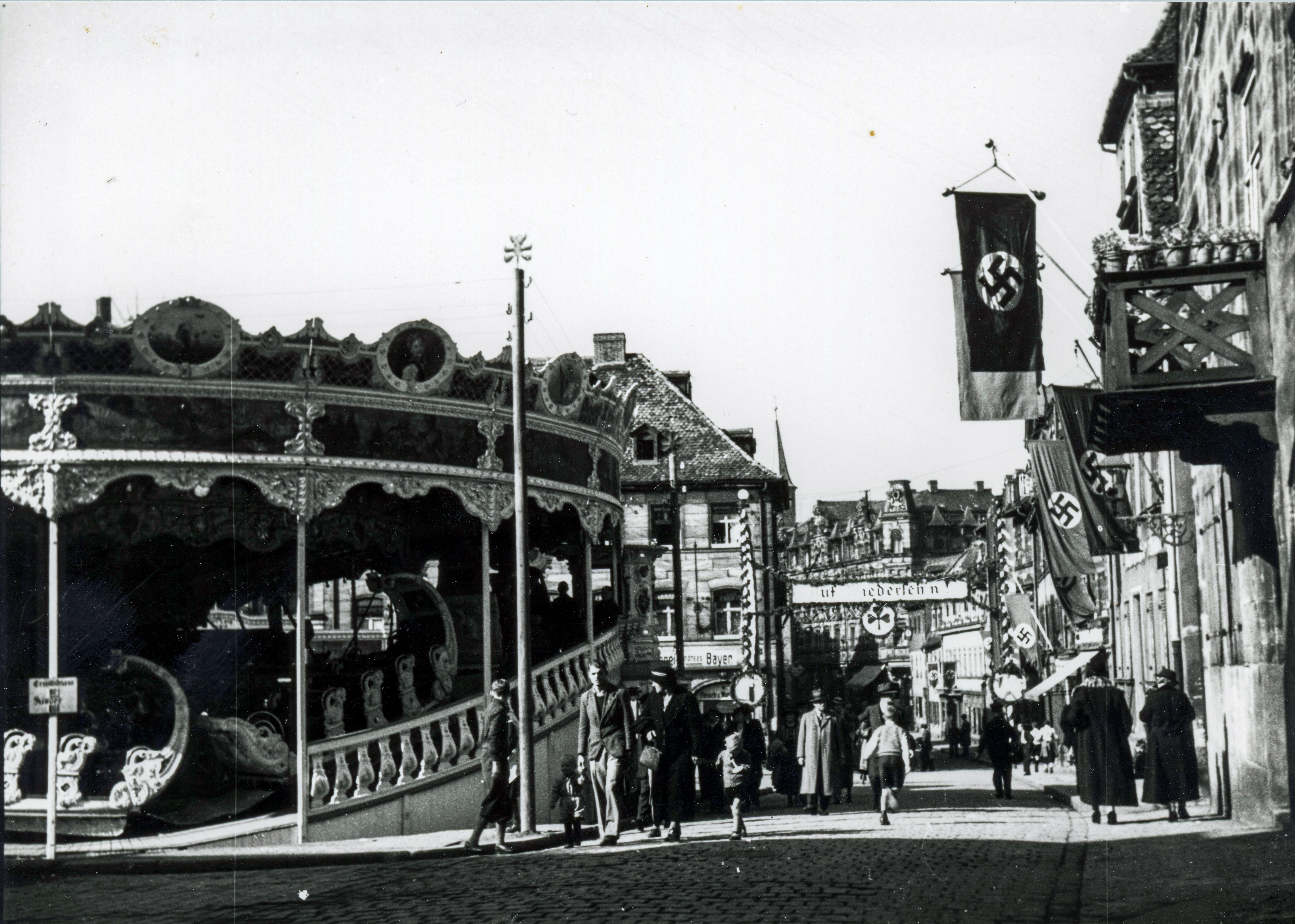 | Beschreibung | Karussell während der Michaeliskirchweih in Zeiten des Nationalsozialismus, 1937 | ||