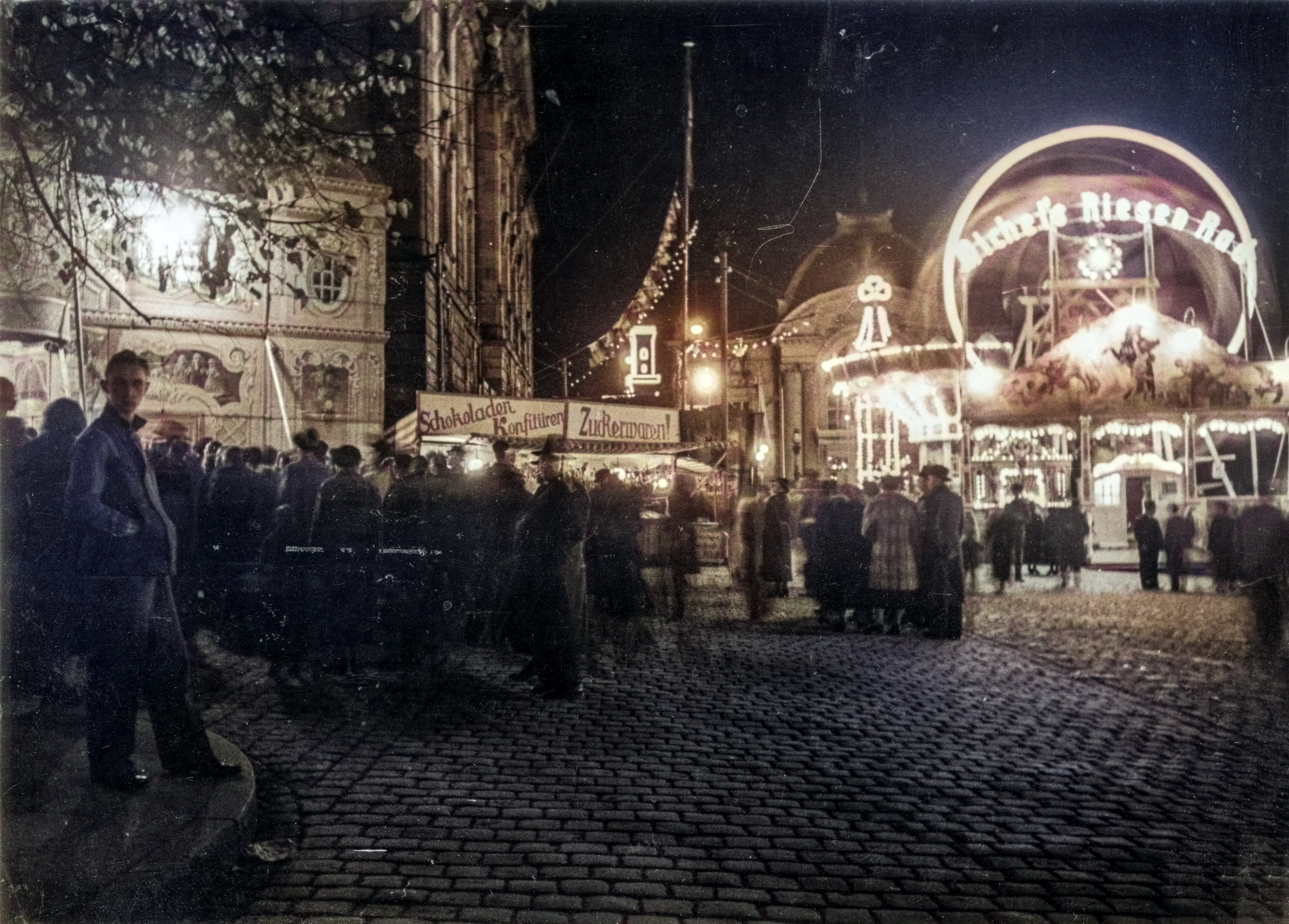| Beschreibung | Michaelis-Kirchweih auf dem Hallplatz - im Hintergrund das Amtsgericht und Stadttheater, 1949 | ||