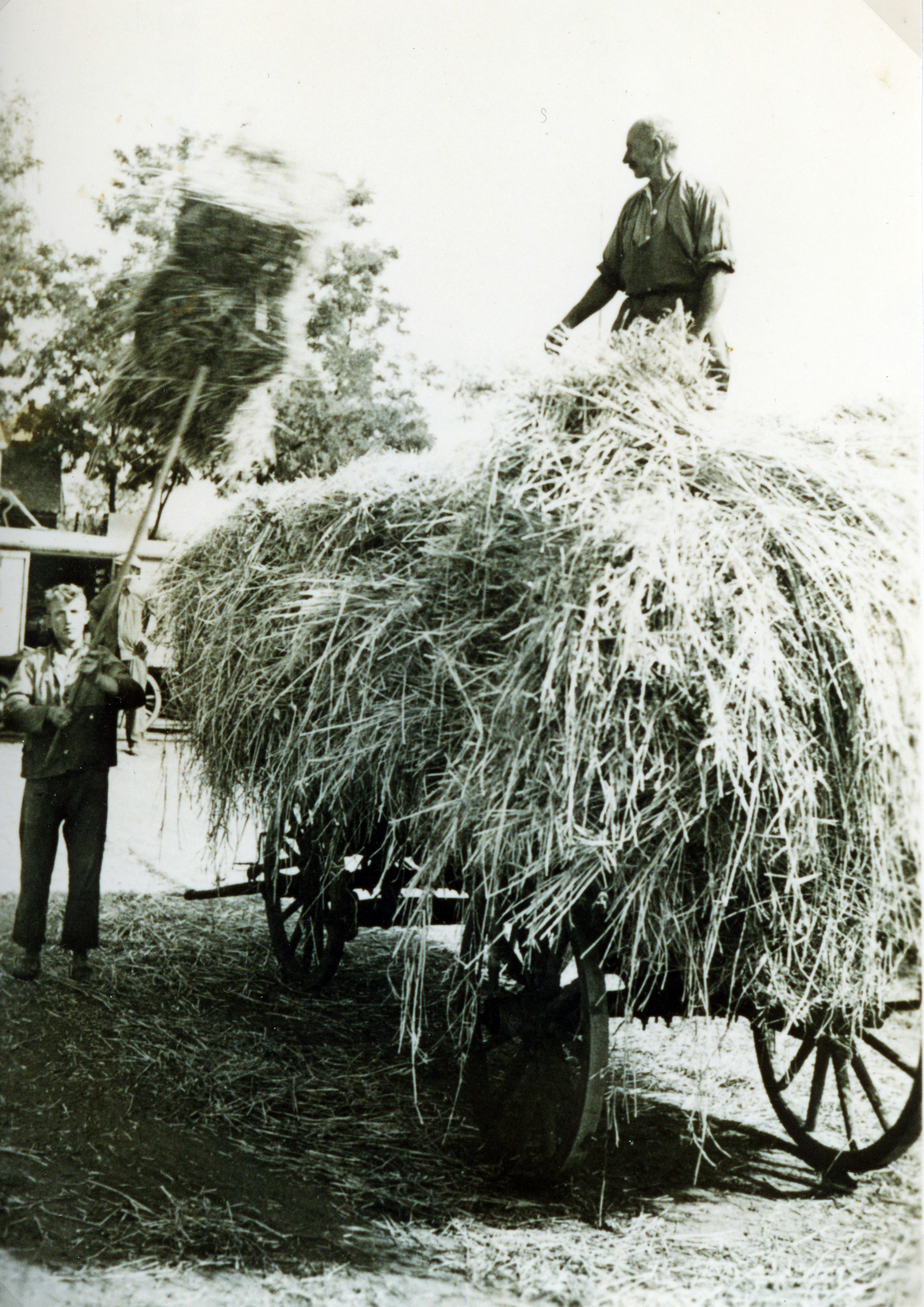 | Dateiinfo (Bild-Unterschrift und Info-Box, automatisch erstellt) | Michael Roth beim Dreschen im Kleinleins-Bauernhof, ca. 1935 Lizenz: CC BY-SA 3.0 | ||