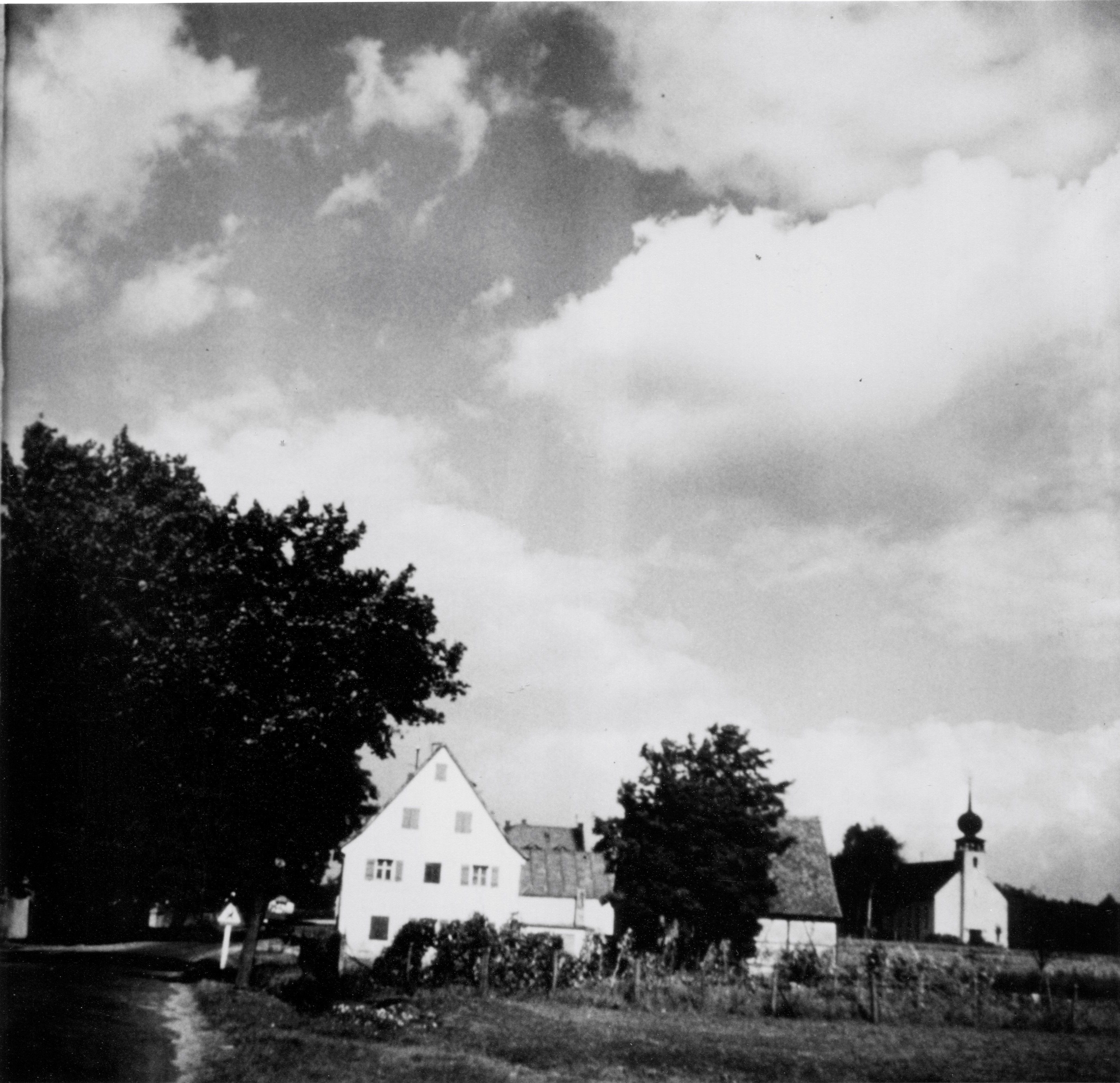 | Beschreibung | südlicher Ortseingang von Mannhof mit Gebäude Stadelner Hauptstraße 172, eine frühere Gaststätte Walz, dann Klaußner, dann Bierlein, nach 1945 einige Jahre Apotheke und heute Wohnhaus. Rechts daneben die Herz-Jesu-Kirche, Aufnahme von 1930 | ||