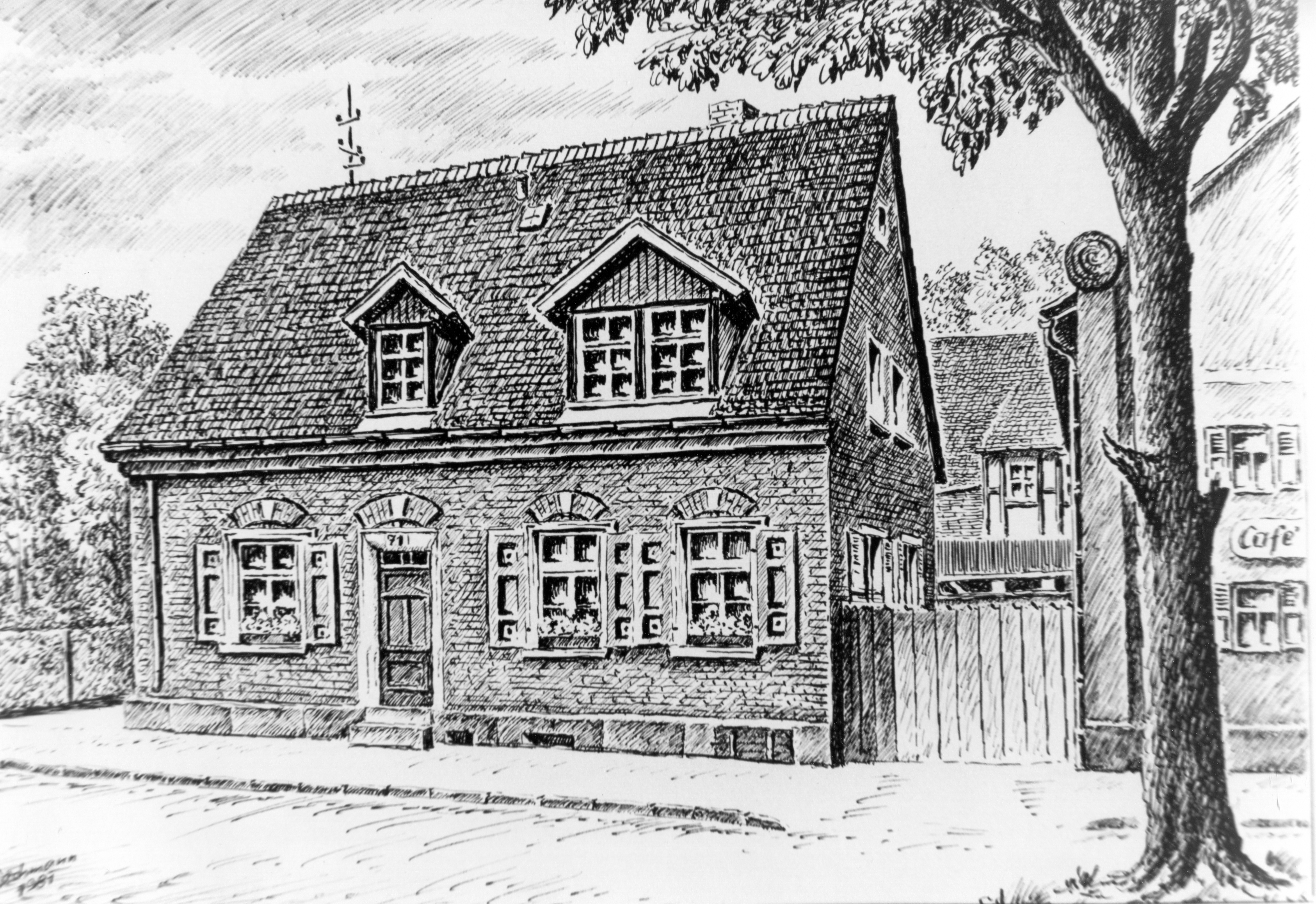 | Beschreibung | Zeichnung der ehem. Gebäudes Stadelner Hauptstraße 82 neben dem Cafe Warmuth rechts 1936, heutiges Wohn- und Geschäftshaus mit "Stadelner Modehaus" | ||