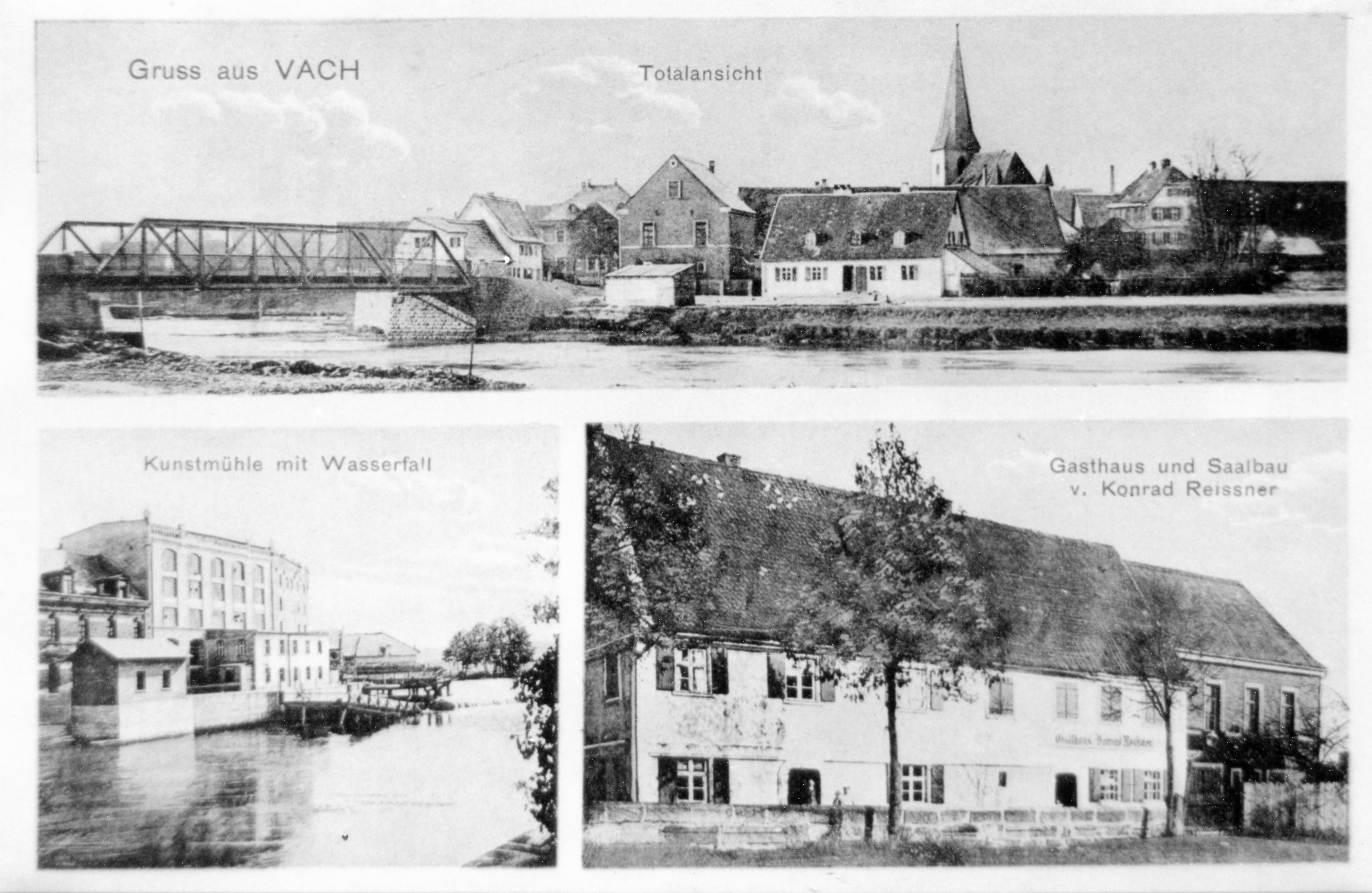 | Dateiinfo (Bild-Unterschrift und Info-Box, automatisch erstellt) | Ansichtskarte von Vach ca. 1930 mit den wichtigsten Sehenswürdigkeiten Urheber: unbekannt<br><br>Lizenz: CC BY-SA 3.0 | ||