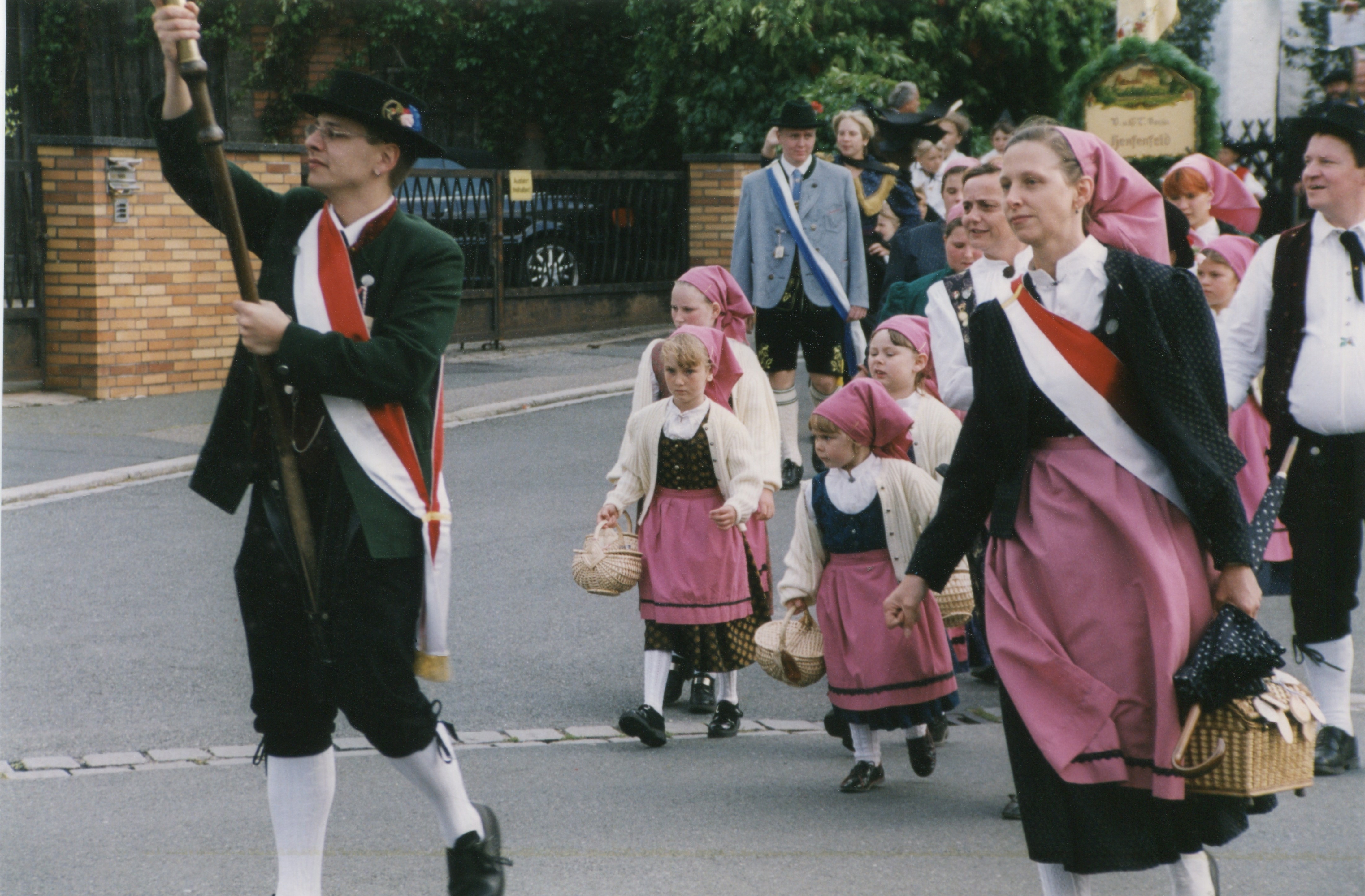 | Beschreibung | der Stadelner Kirchweihzug aus der Gebrüder-Grimm-Straße kommend im August 2000 | ||