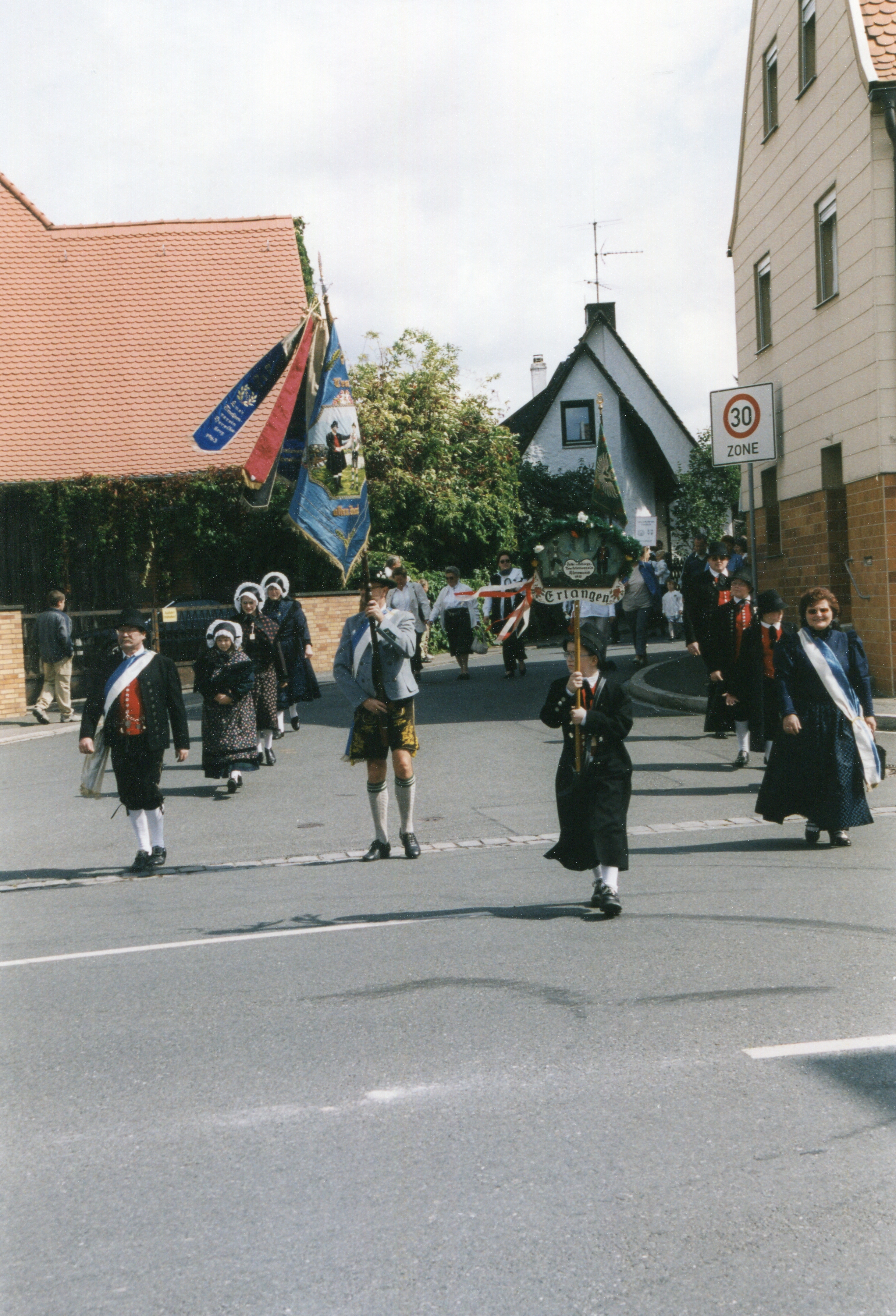 | Beschreibung | Der Stadelner Kirchweihzug aus der Gebrüder-Grimm-Straße kommend im August 2000 | ||