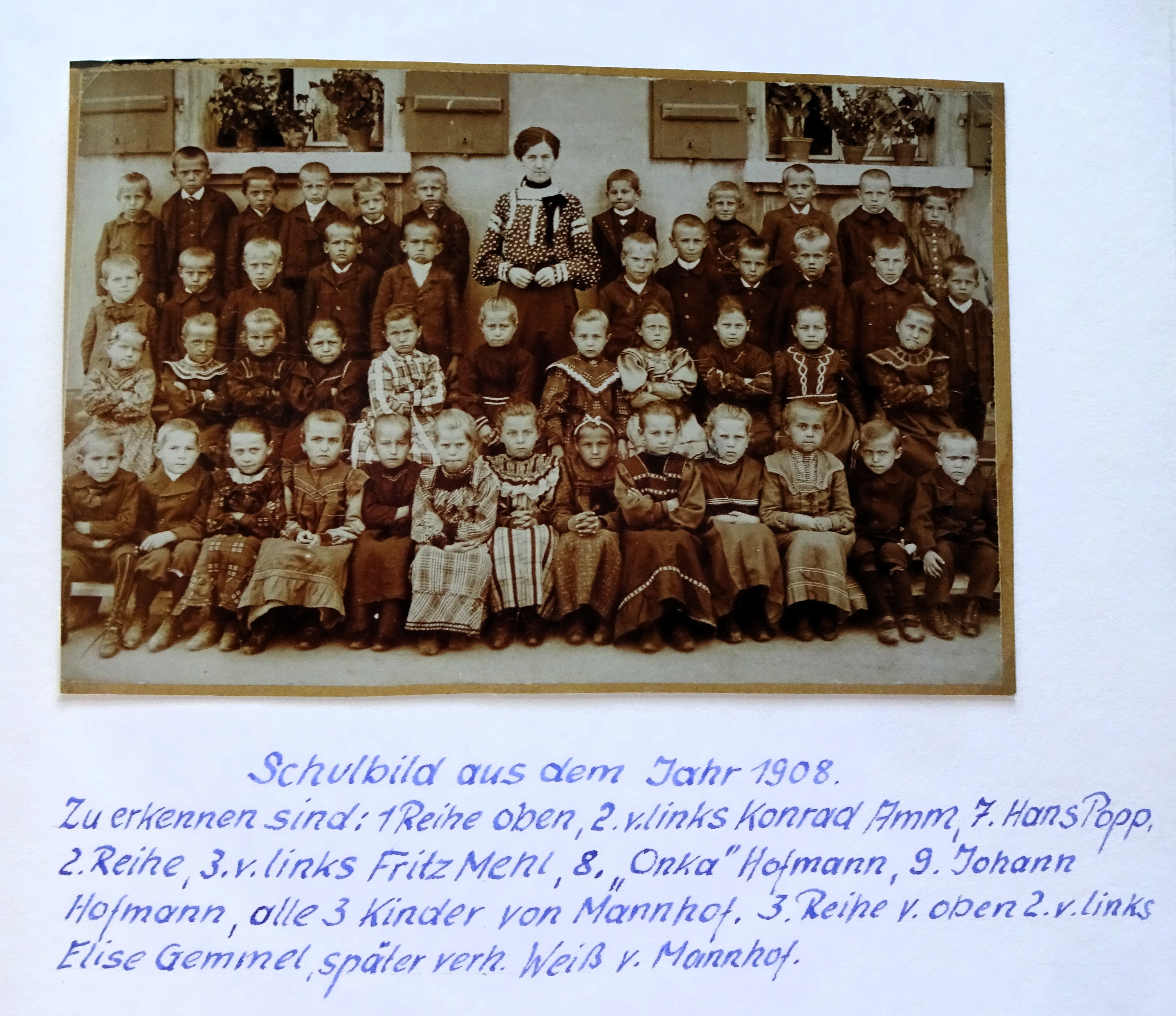 | Beschreibung | Klassen Foto in Stadeln von 1908, mit Namenliste von Georg Mehl | ||