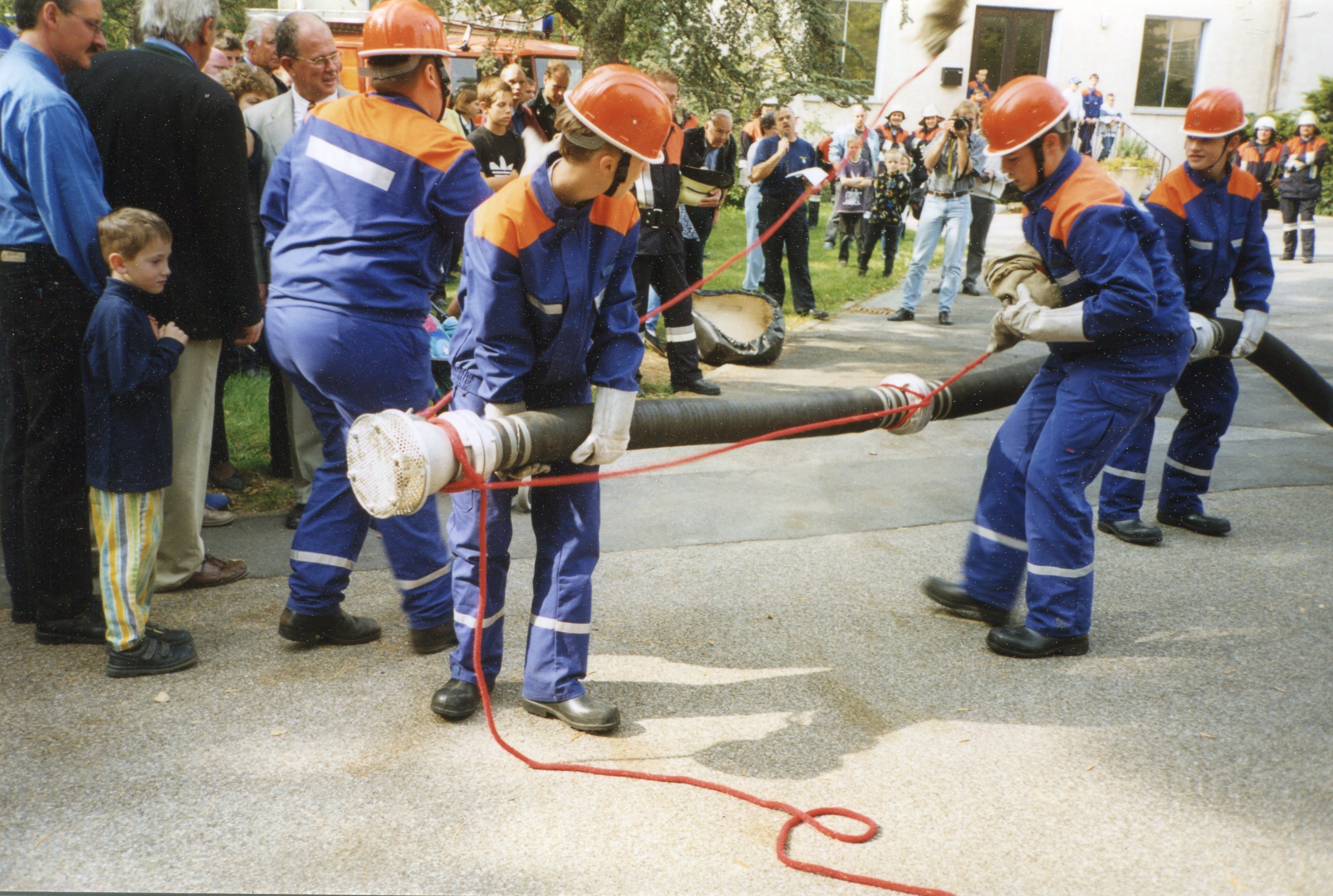 | Beschreibung | 125jähriges Gründungsfest der FFW Stadeln. Vorführung der Jugend Feuerwehr im Schulhof der ehem. Gemeinschaftsschule Stadeln, September 1998 | ||
