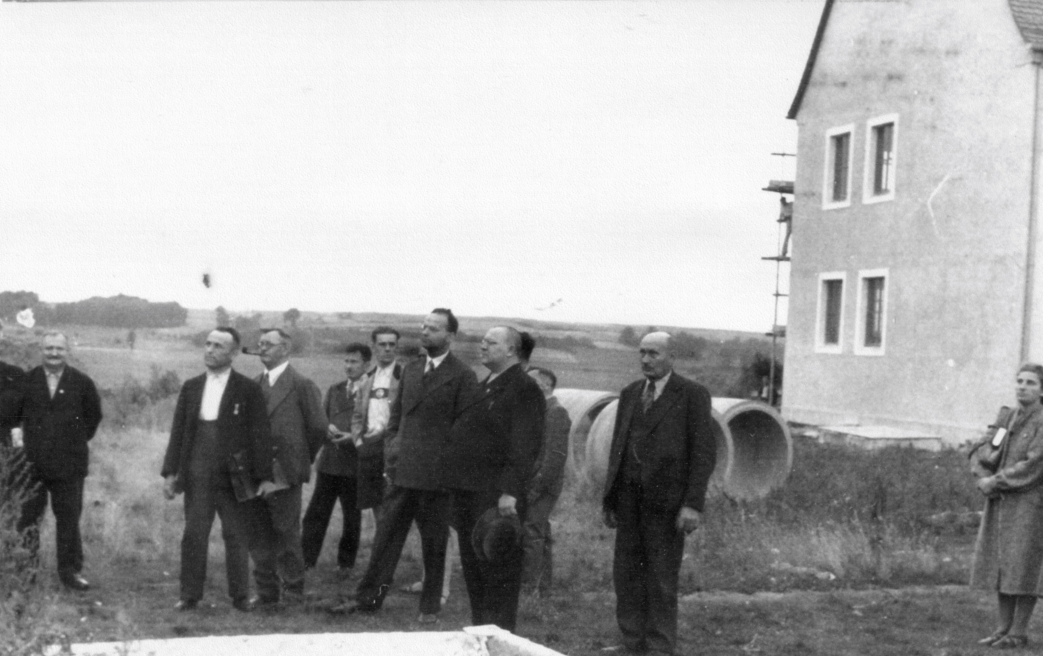 | Beschreibung | Zuschauer beim Richtfest des neuen Kindergarten der heutigen Karl-Hauptmannl-Straße 7 am im Bau befindlichen Gemeinschaftsschule Stadeln am 18. August 1939 | ||
