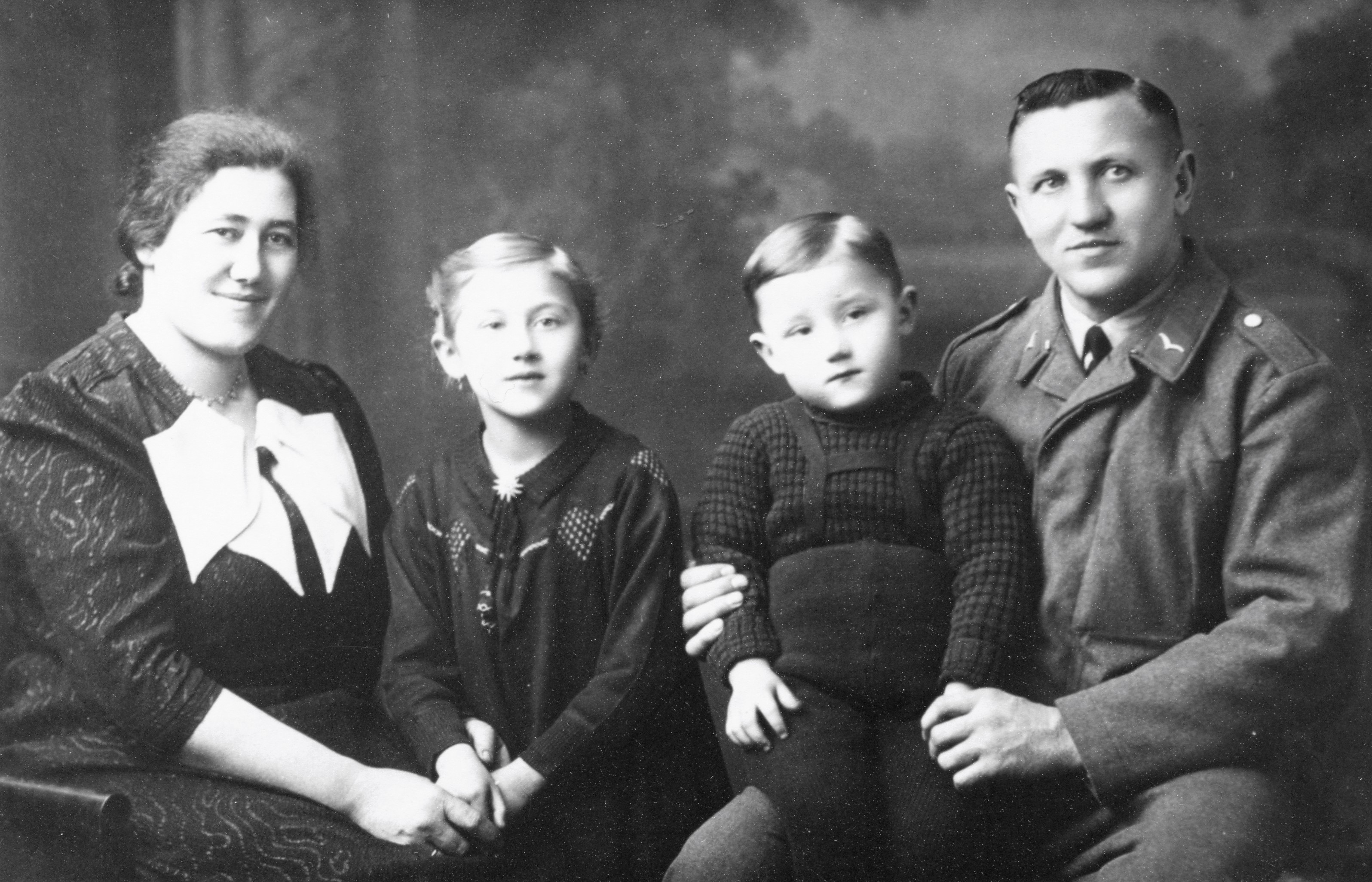| Beschreibung | Heinrich Kalb in Luftwaffen Uniform mit Ehefrau Margarete "Gretl" Kalb und Tochter Marga, später verheiratet mit Hans Sippel von Steinach und Sohn Hans Kalb, ca. 1940 | ||