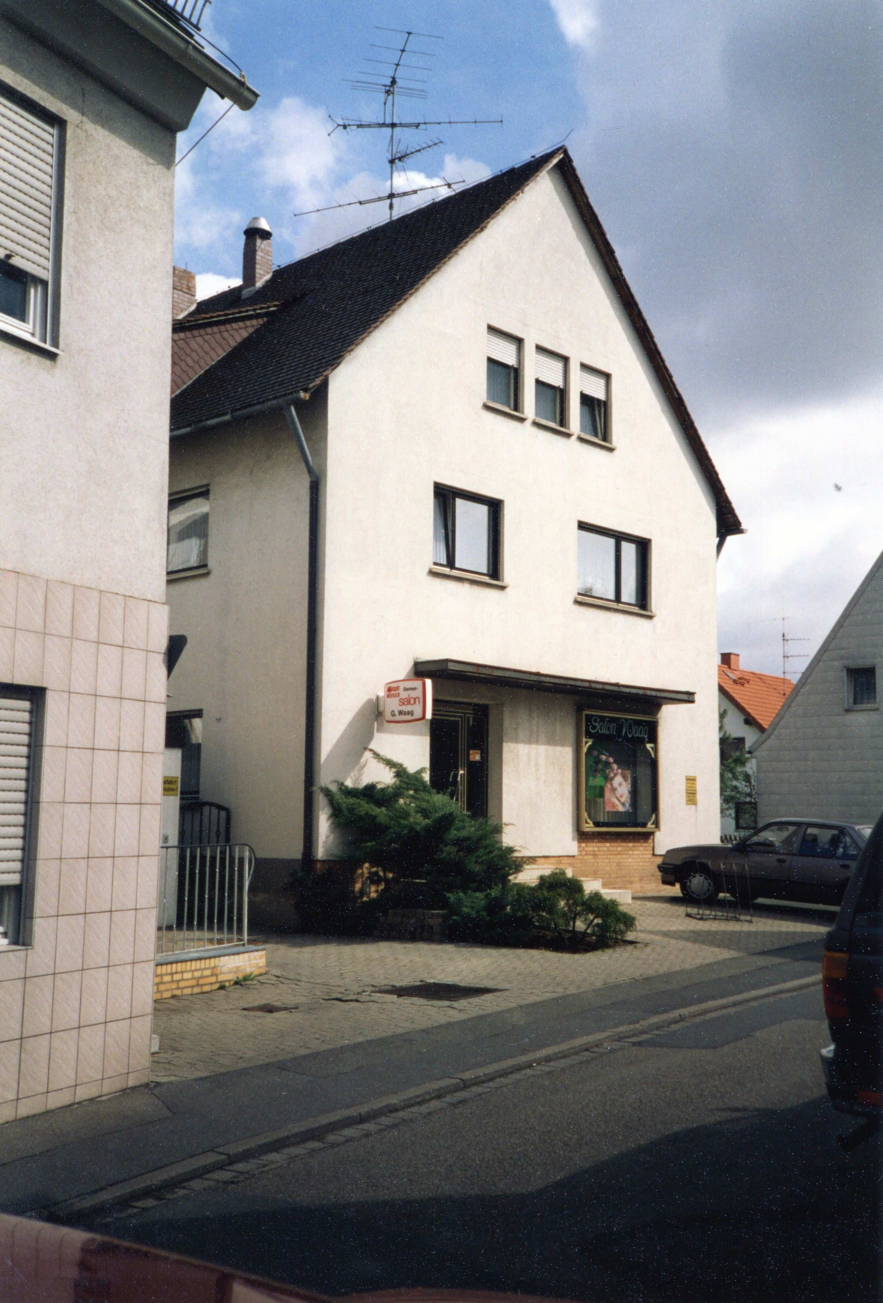 Beschreibungneue Wohn- und Geschäftshaus Haus Nr. 5, genau hier stand das 1937 aus einer Scheune umgebaute und 1966 abgerissene bekannte Café Warmuth in Stadeln, Aufnahme von 1994