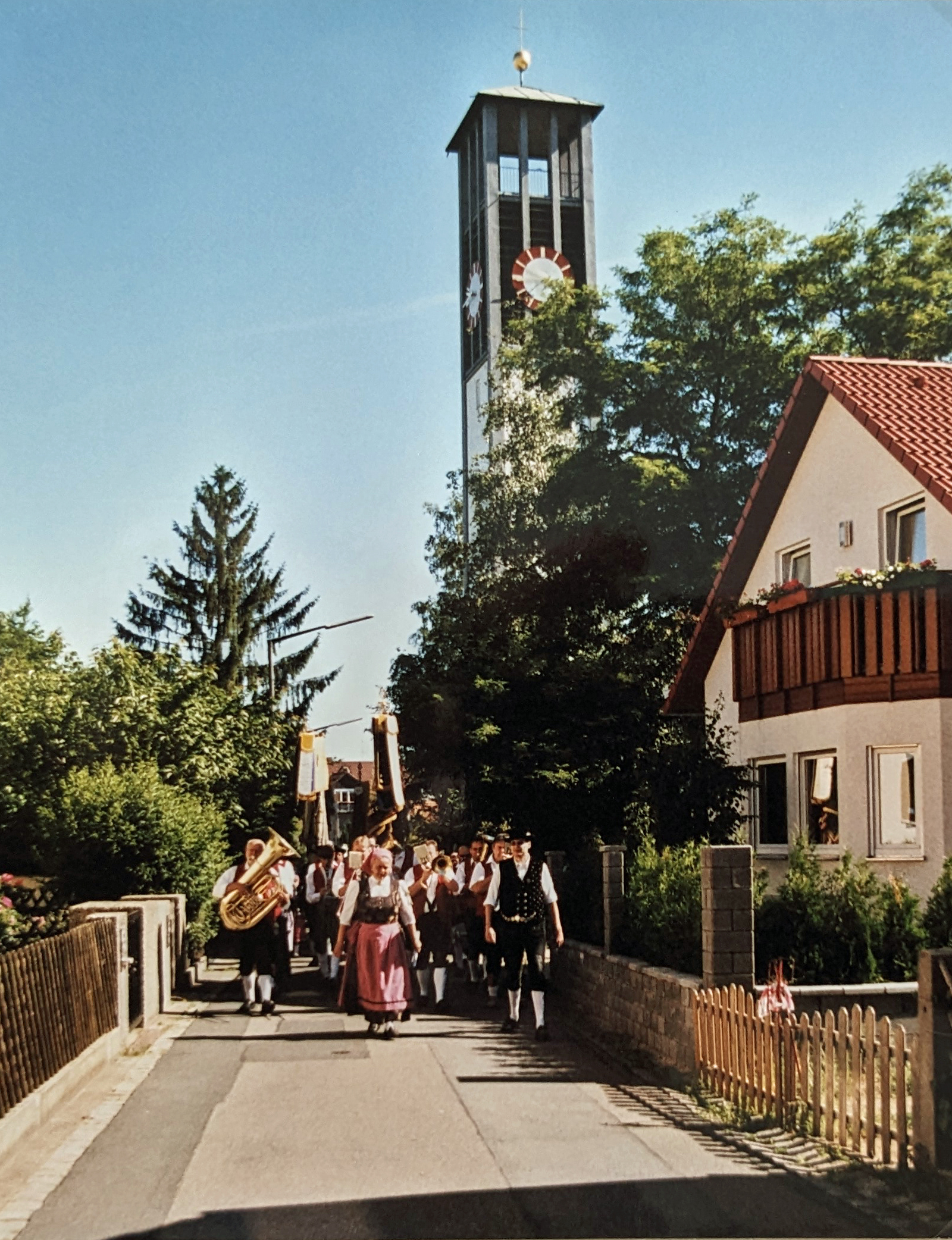 | Beschreibung | Abmarsch der Vereine beim 40-jährigen Gründungsfest des Heimat- und Trachtenvereins in Stadeln, 2005 | ||