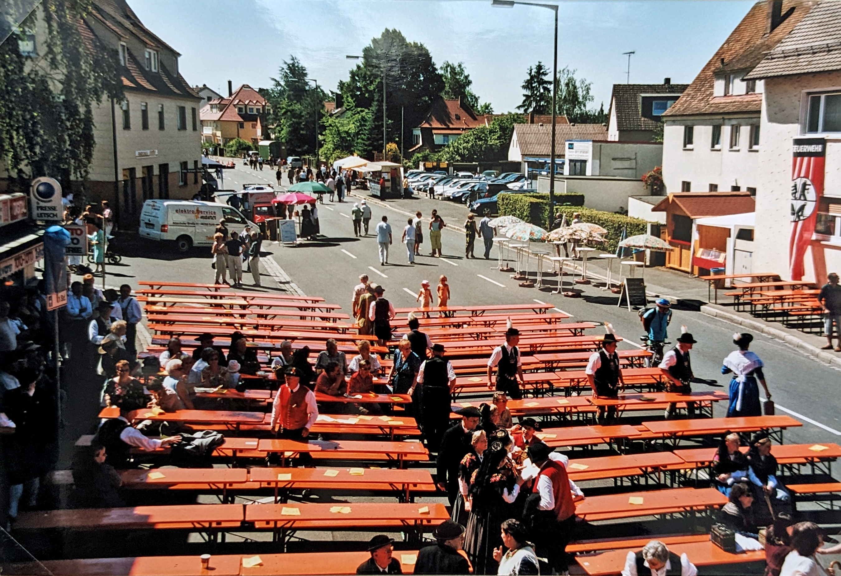 | Beschreibung | Die gesperrte Stadelner Hauptstraße beim 40-jährigen Gründungsfest des Heimat- und Trachtenvereins in Stadeln, 2005 | ||