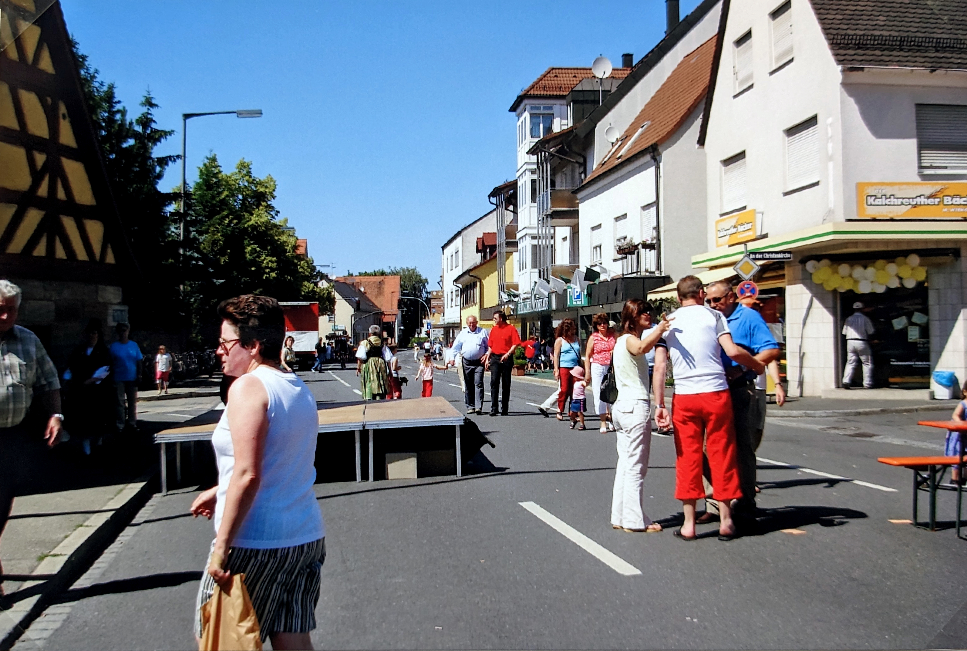 | Beschreibung | Die gesperrte Stadelner Hauptstraße beim 40-jährigen Gründungsfest des Heimat- und Trachtenvereins in Stadeln, 2005 | ||
