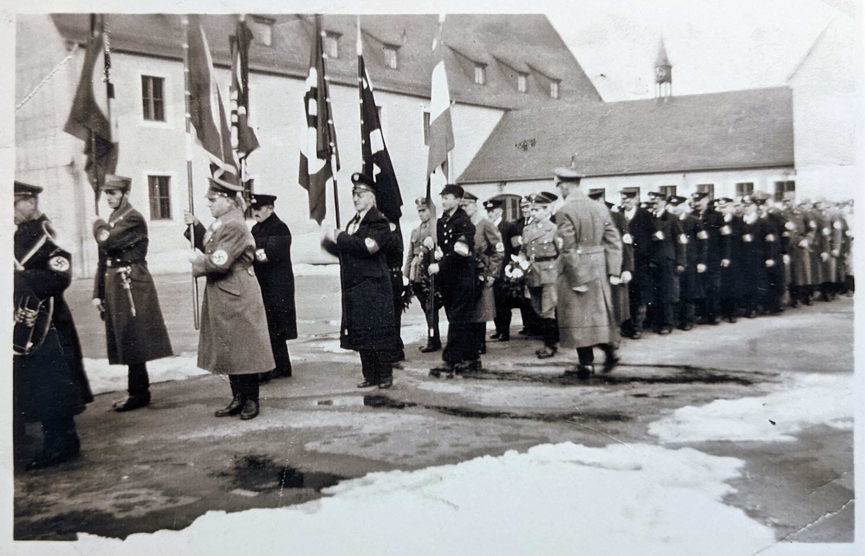| Beschreibung | Begräbnis vom Oberscharführer August Muggenhöfer vom SA-Sturm 11/24 am 5.10.1940 Stadeln. Aufstellen aller Partei Gliederungen im ehem. Schulhof und Marsch zum Friedhof. | ||