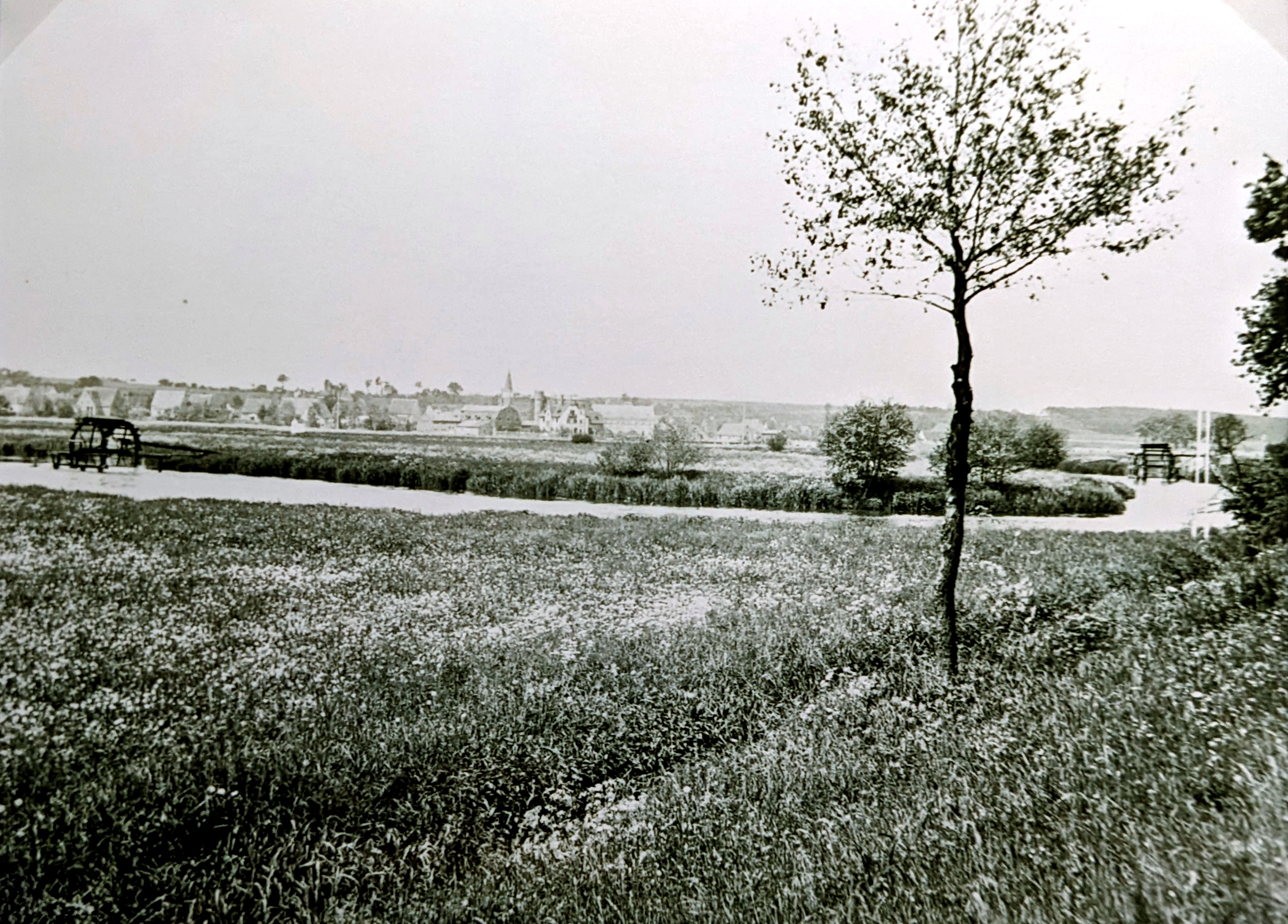 | Beschreibung | Zwei Wasserschöpfräder im Wiesengrund am Herzogenpoint in Stadeln, 1935 | ||