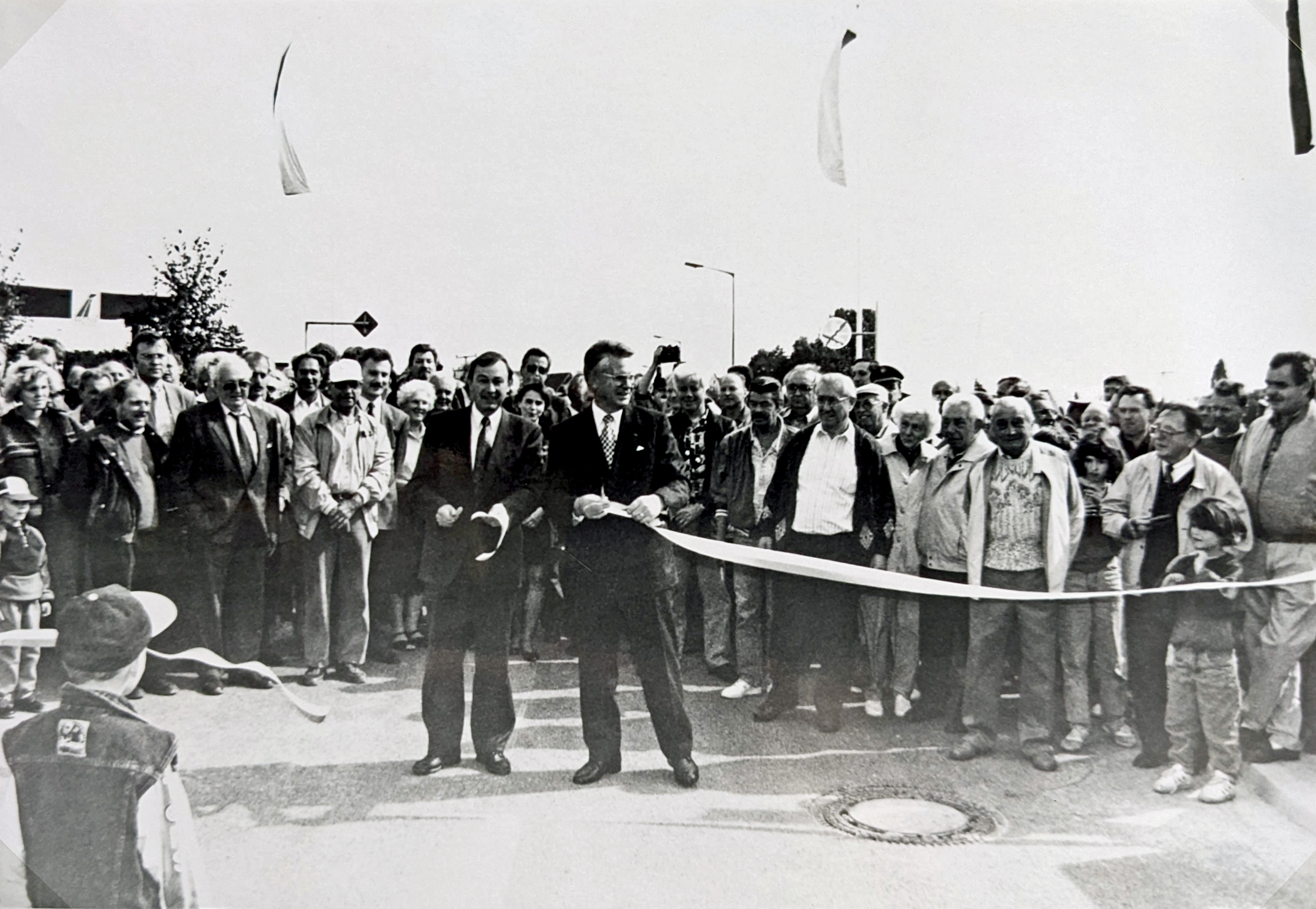 | Beschreibung | Freigabe des Talübergangs zwischen Mannhof und Vach durch OB Lichtenberg und Innenminister Dr. Günther Beckstein, Sep. 1993 | ||
