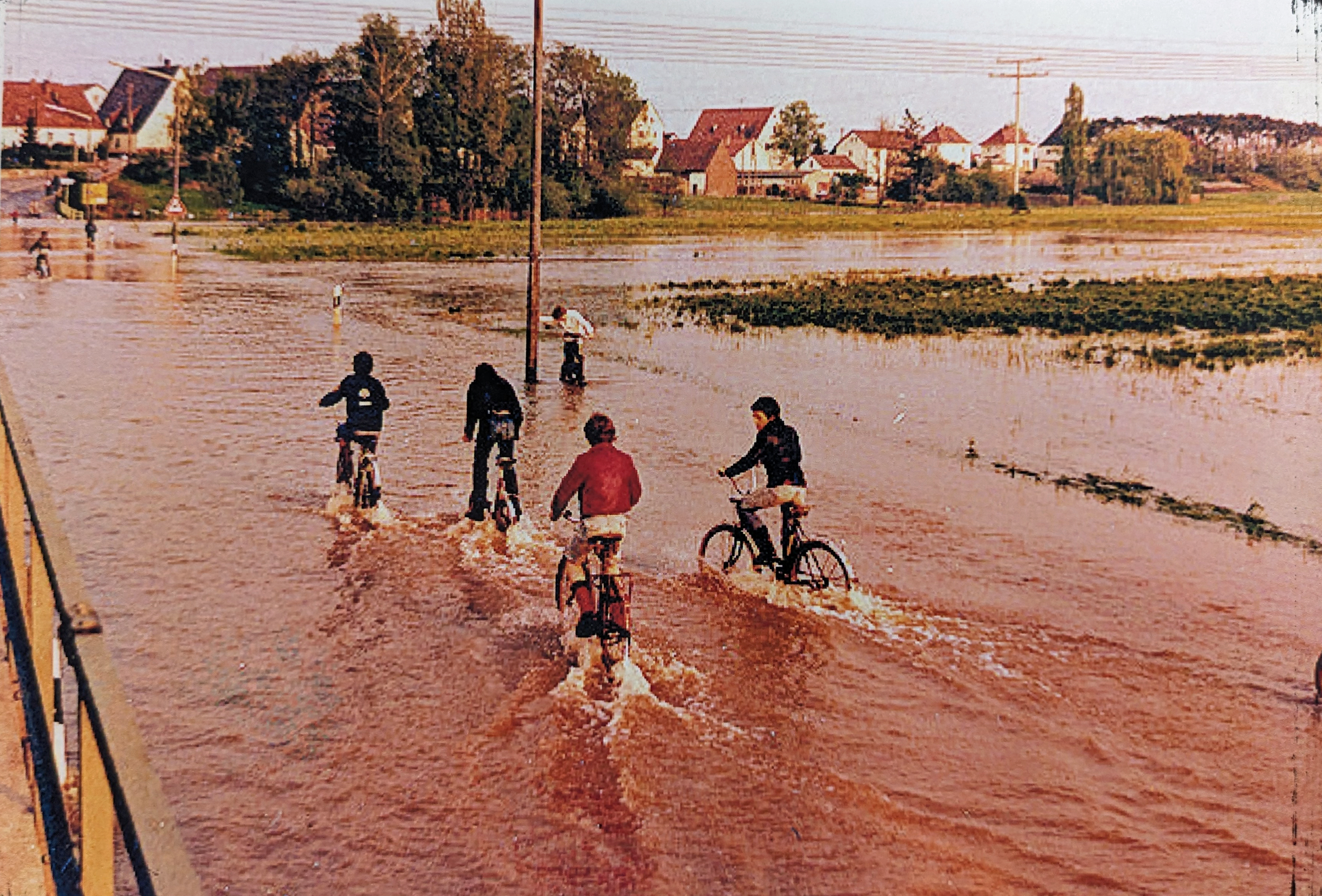 | Beschreibung | Der Talübergang zwischen Vach und Mannhof bei Hochwaser, 1970er Jahre | ||
