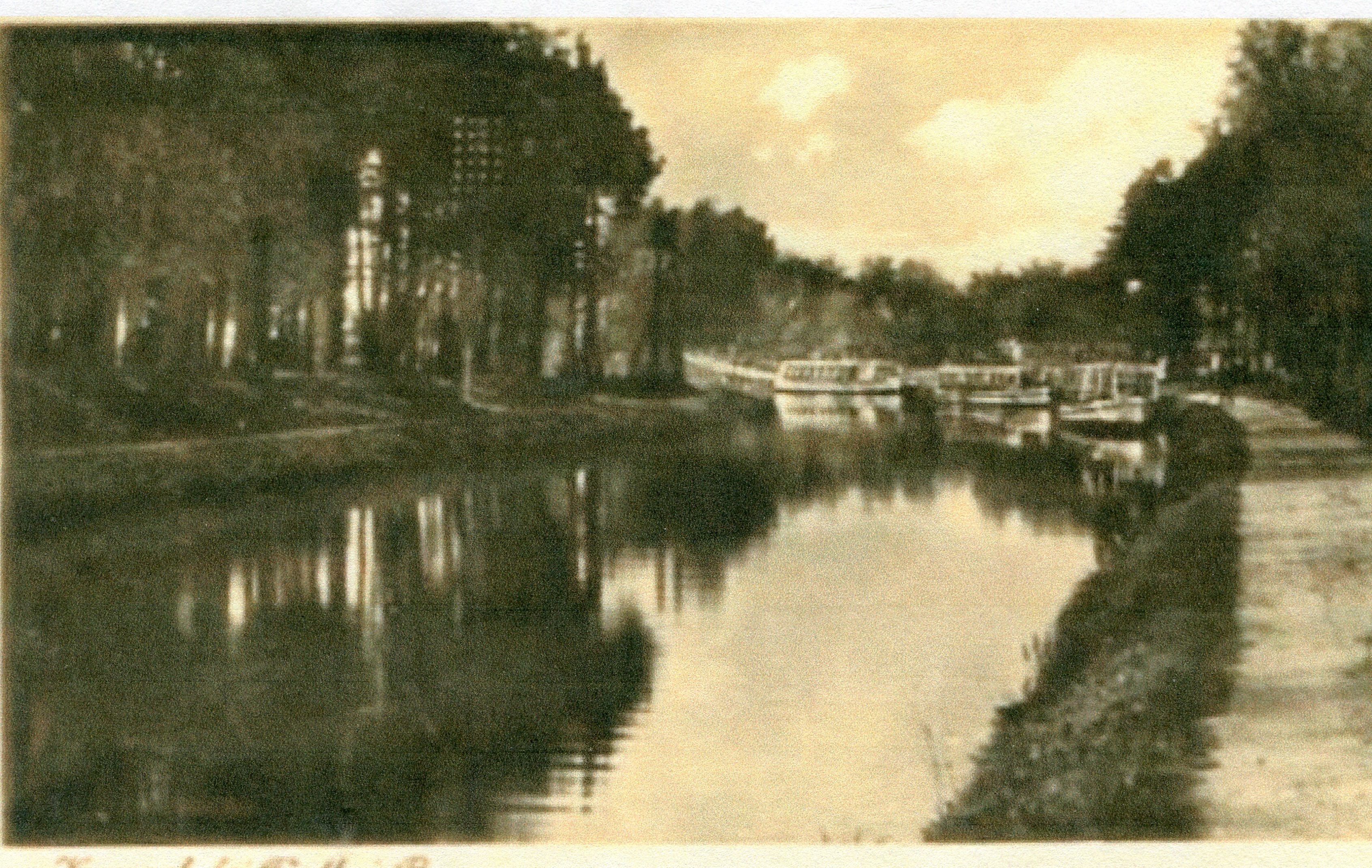 | Beschreibung | Ludwigskanal vor Kronach mit den drei "Schlagrahmdampfern" vom Restaurant Weigel, ca. 1930 | ||