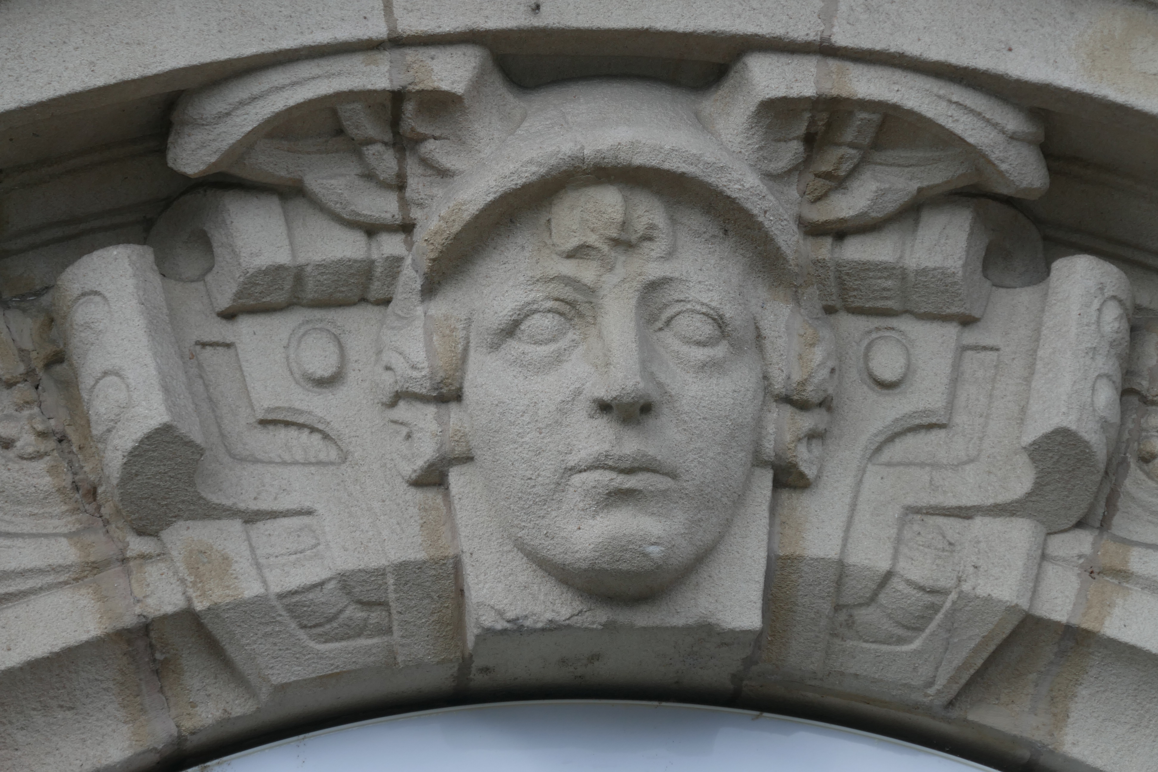 | Beschreibung | Ehemaliges Exporthaus Berlin, Merkur über dem Portal in der Nürnberger Straße, 2020 | ||