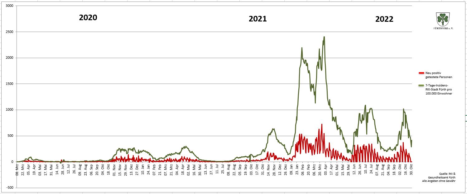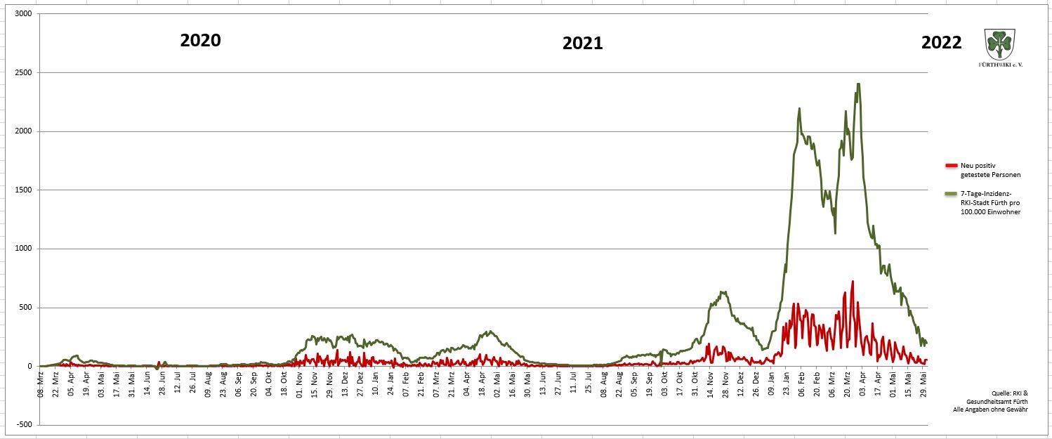 - Das Diagramm setzt sich aus den Daten des Gesundheitsamtes Fürth und den Zahlen des RKI zusammen.