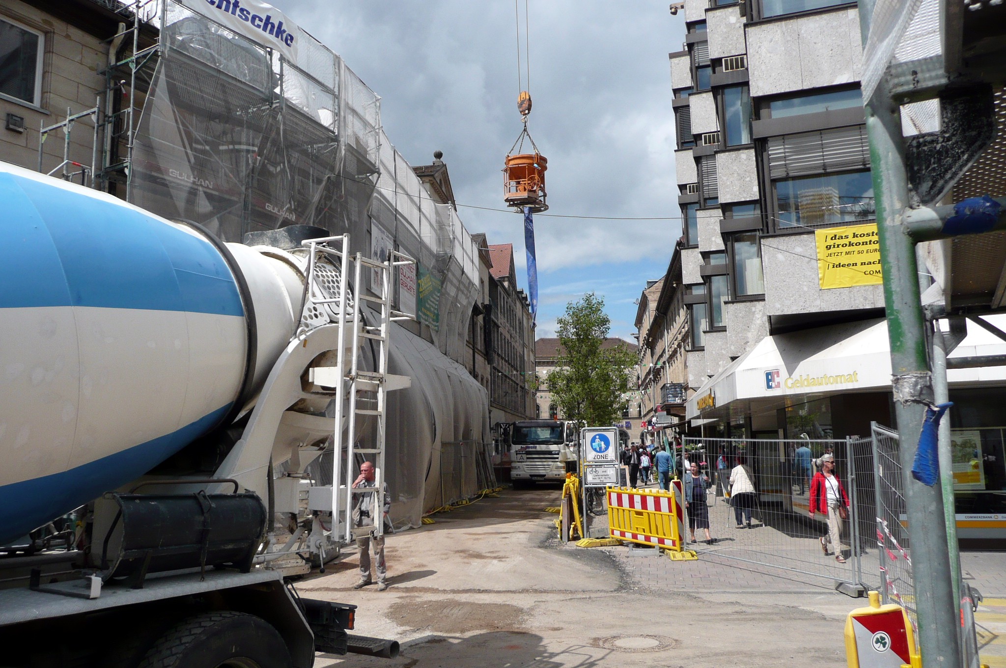 Blick in die Rudolf-Breitscheid-Straße Richtung Schwabacher Straße an der Hallstraße mit Neu- und Umbaumaßnahmen zum Großprojekt "Neue Mitte" - Aufnahme von 2014