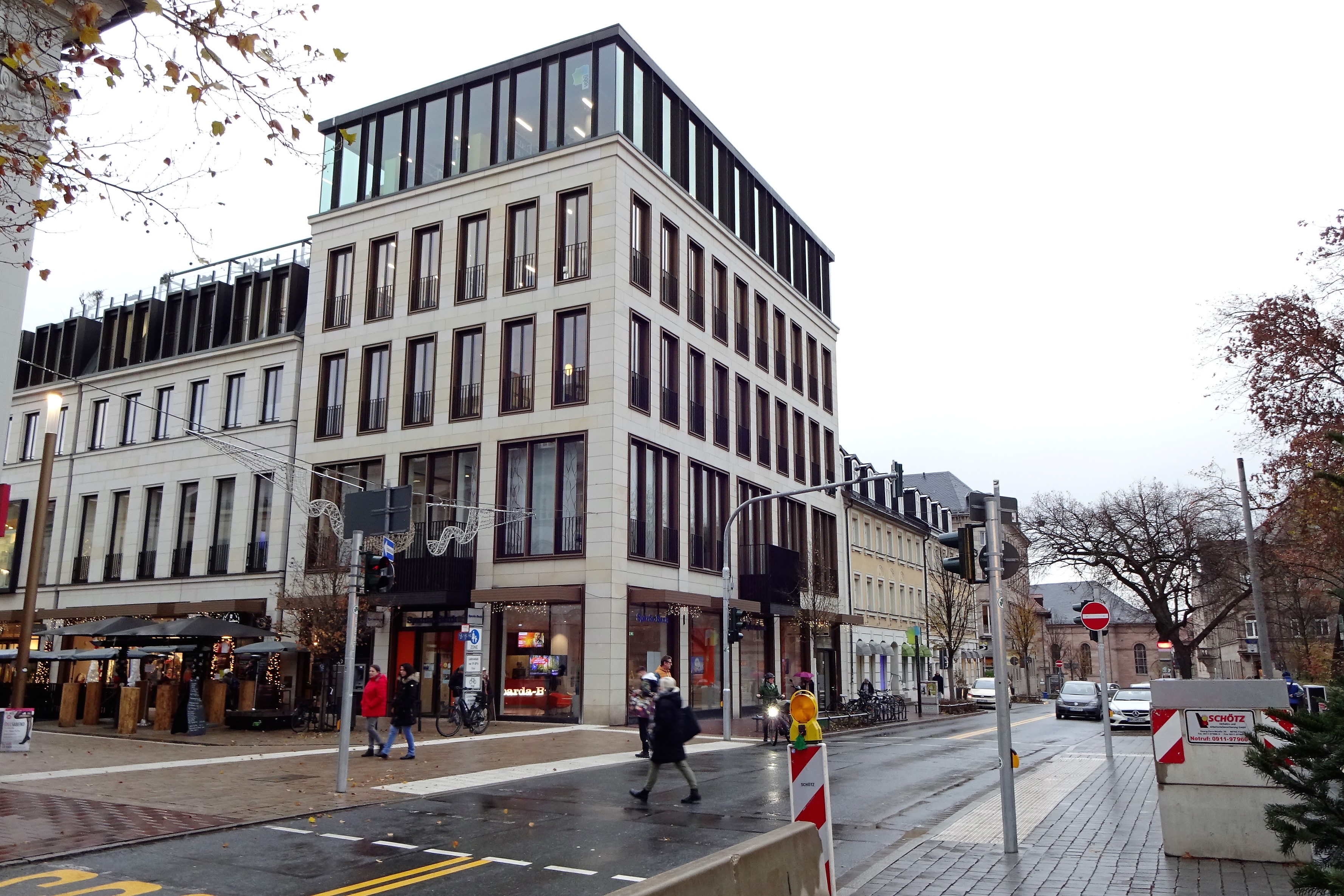 | Beschreibung | Blick von der Friedrichstraße mit Neuer Mitte und Volksbücherei an der Ecke Rudolf-Breitscheid-Straße, Dez. 2022 | ||