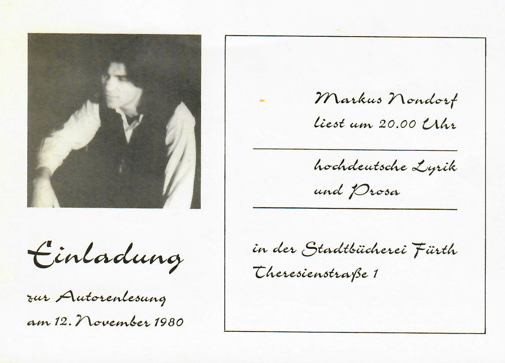 | Beschreibung | Einladung zur Autorenlesung von Markus Nondorf (1980) | ||