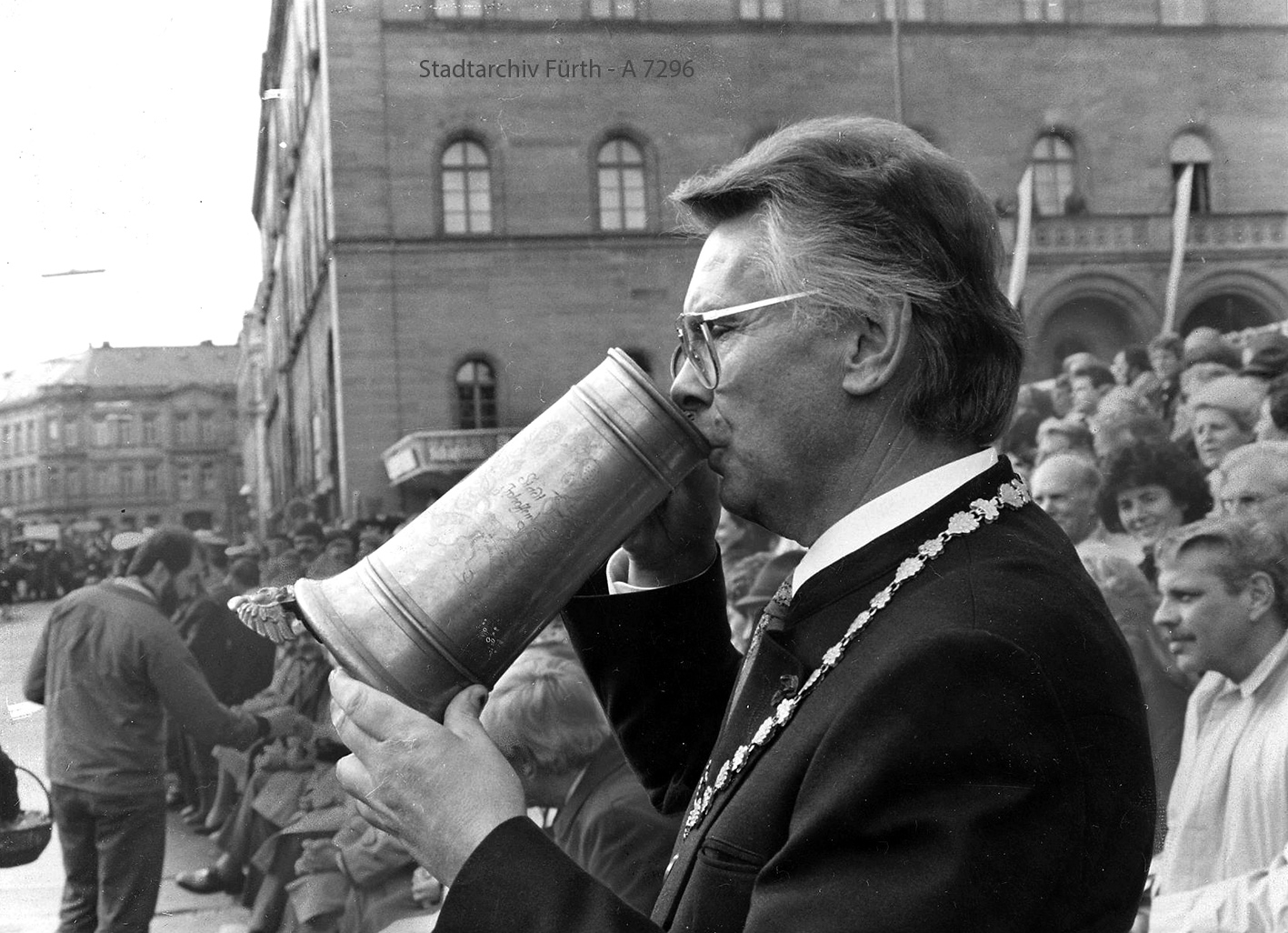 | Dateiinfo (Bild-Unterschrift und Info-Box, automatisch erstellt) | Fürther Kirchweih, Erntedankfestzug 1988 Lizenz: Bildlizenz-Stadtarchiv | ||
