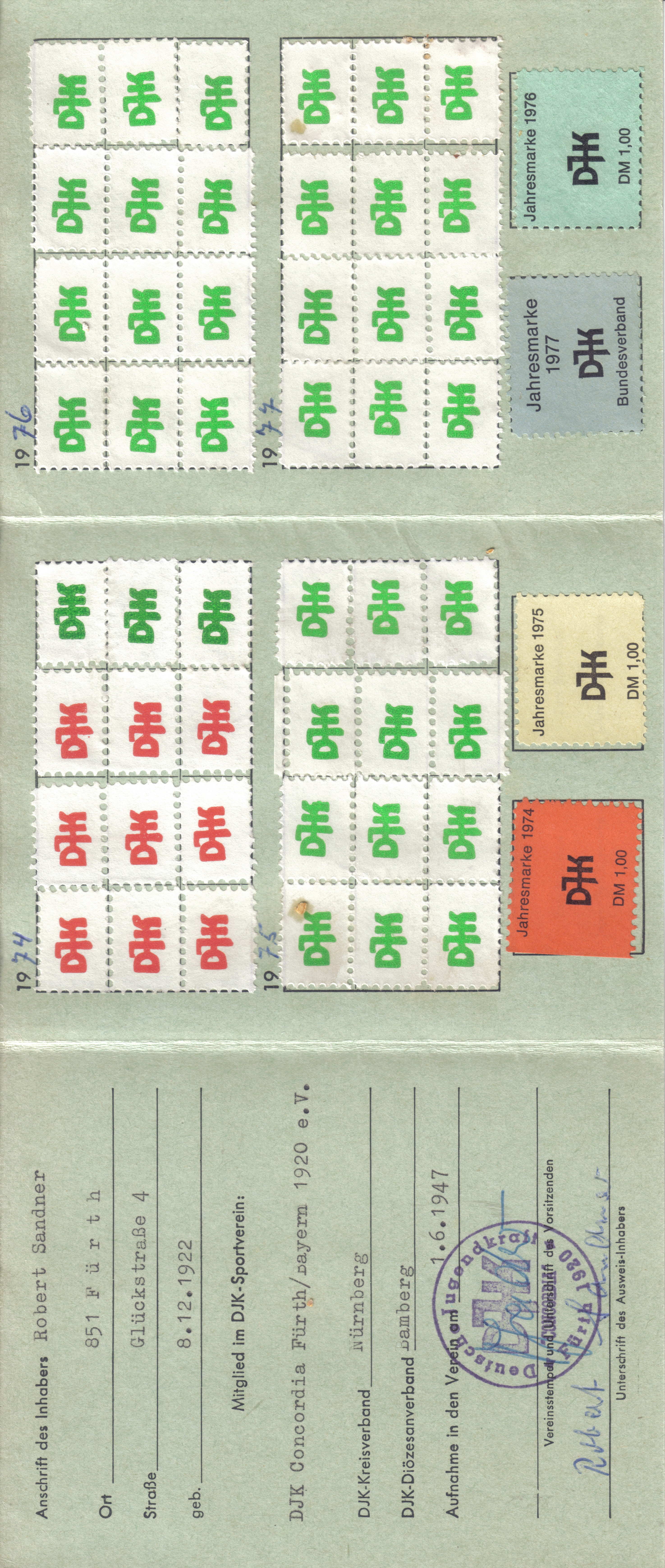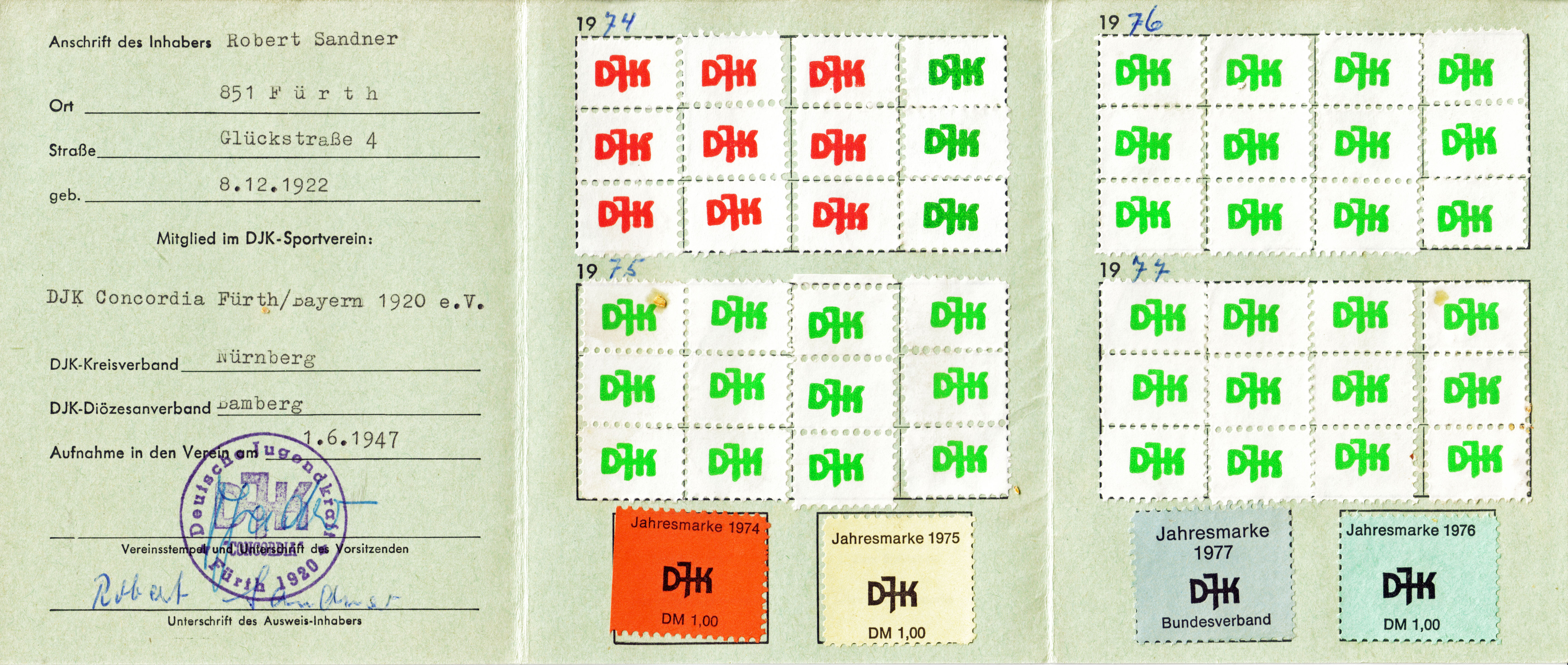 | Beschreibung | Mitgliedsausweis von Robert Sander, der den Verein nach dem Krieg 1947 wieder mit gegründet hat | ||