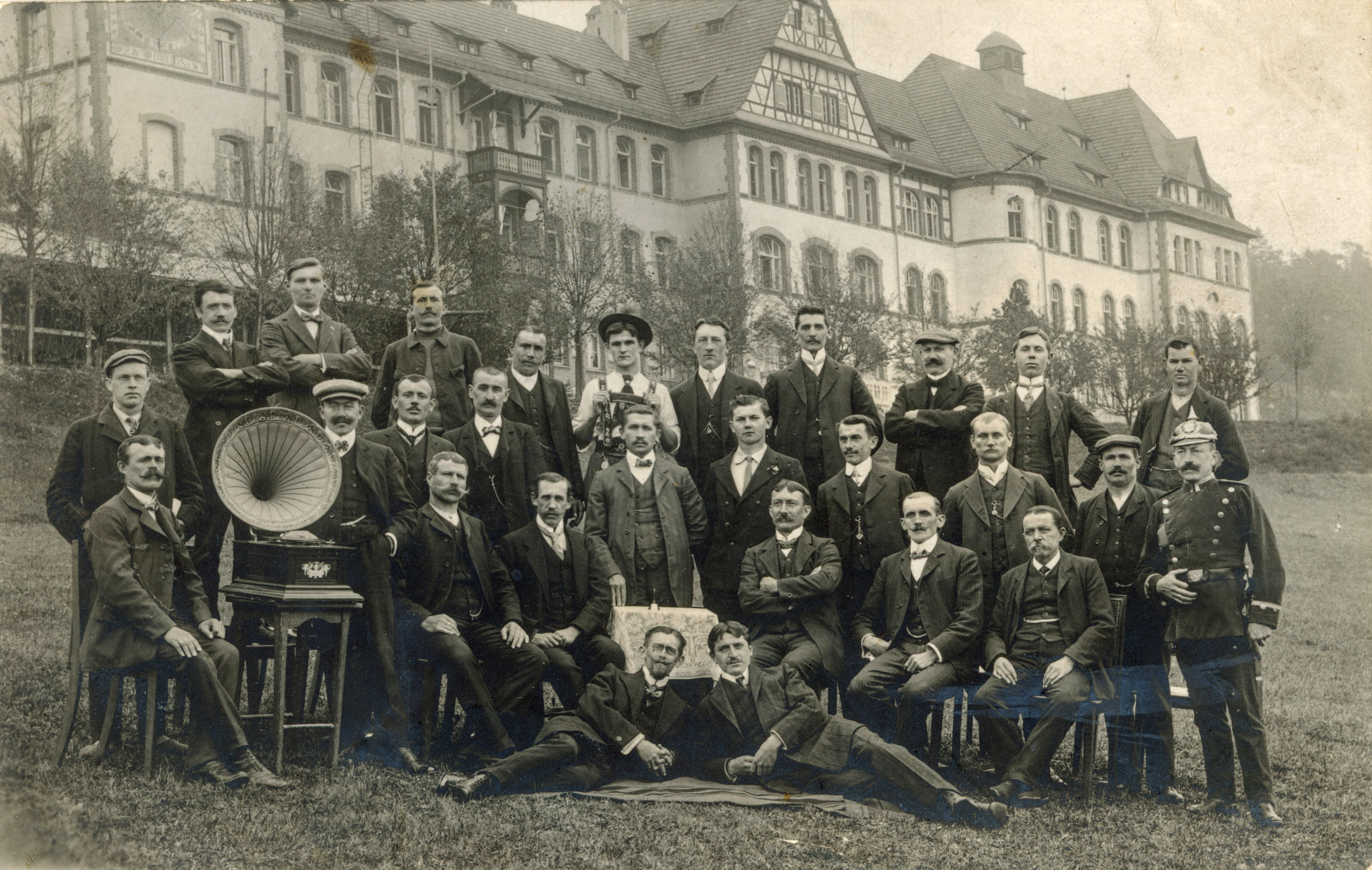 | Dateiinfo (Bild-Unterschrift und Info-Box, automatisch erstellt) | Ansichtskarte einer Oberlandler-Kapelle aus Fürth, welche vor der ehemaligen Lungenheilstätte ... Ansichtskarte einer Oberlandler-Kapelle aus Fürth, welche vor der ehemaligen Lungenheilstätte Engelthal posiert<br>Urheber: unbekannt<br>Lizenz: CC BY-SA 4.0 | ||