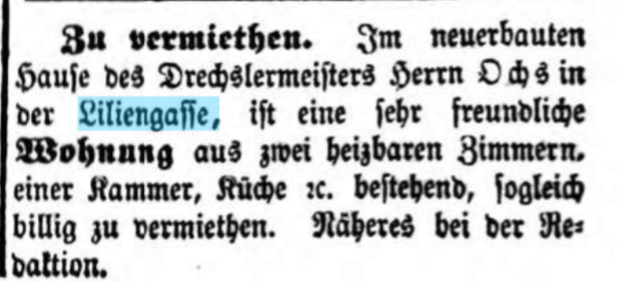 | Dateiinfo (Bild-Unterschrift und Info-Box, automatisch erstellt) | Zeitungsannonce des Drechslers A. L. Ochs, Oktober 1855 Lizenz: NoC-NC 1.0 | ||