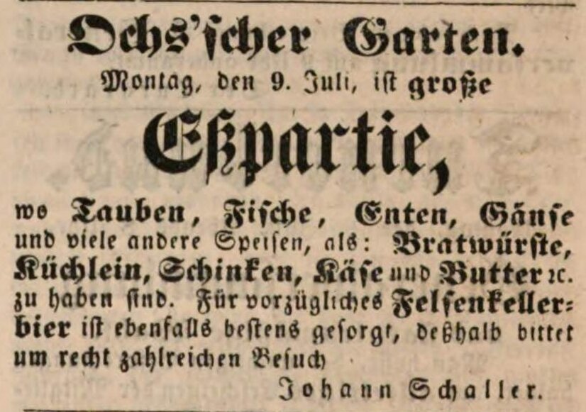 | Beschreibung | Werbeannonce für den Ochsischen Garten, Juli 1849 | ||