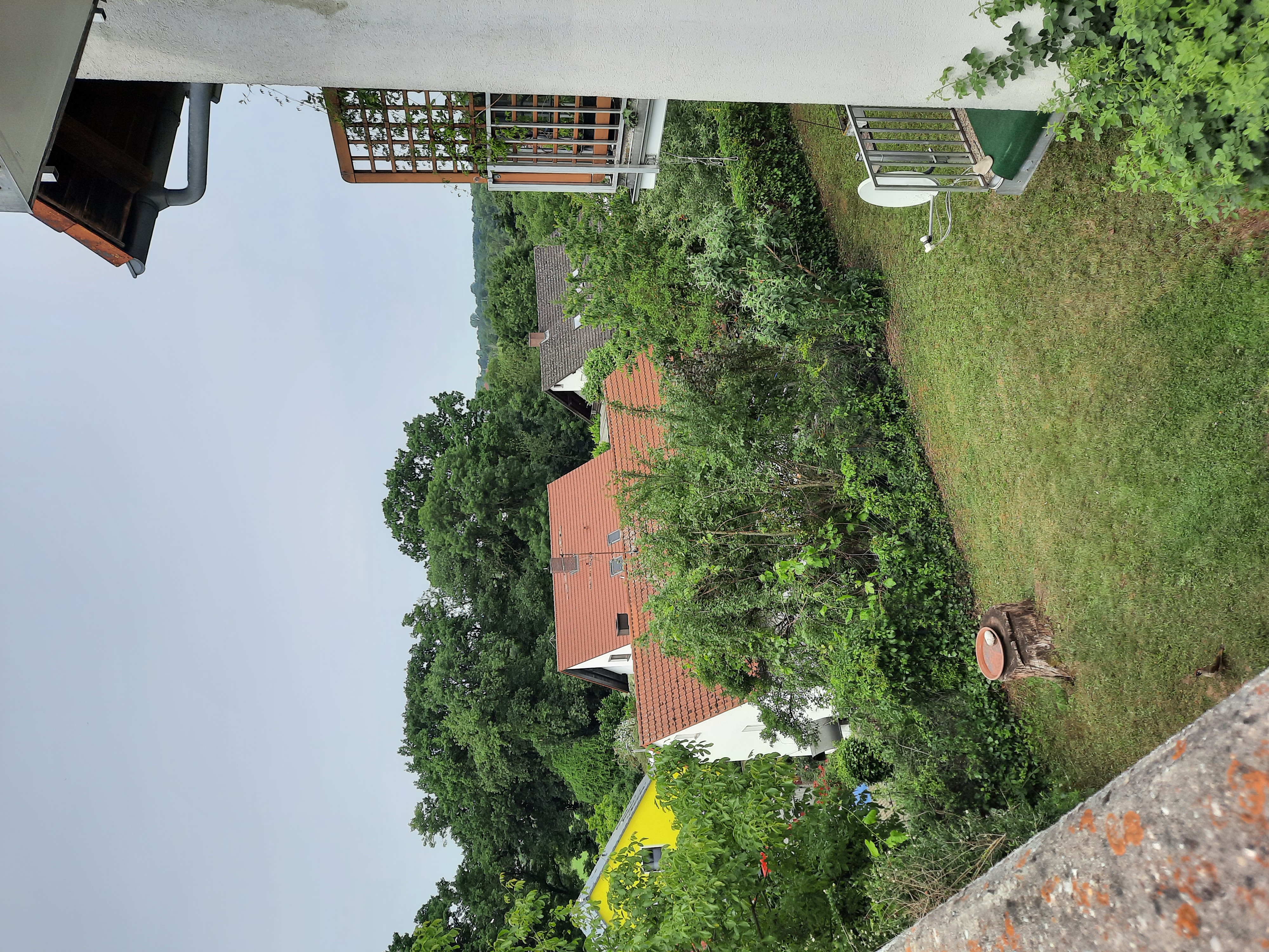 | Beschreibung | Blick von der Wohnanlage Orchideenstraße 10 und 12 (Hauseck), früher der Außensitzbereich der Gaststätte Gartenfreunde, unten die Häuserzeile Spitzwiesenstraße, Aufnahme Juni 2025 | ||