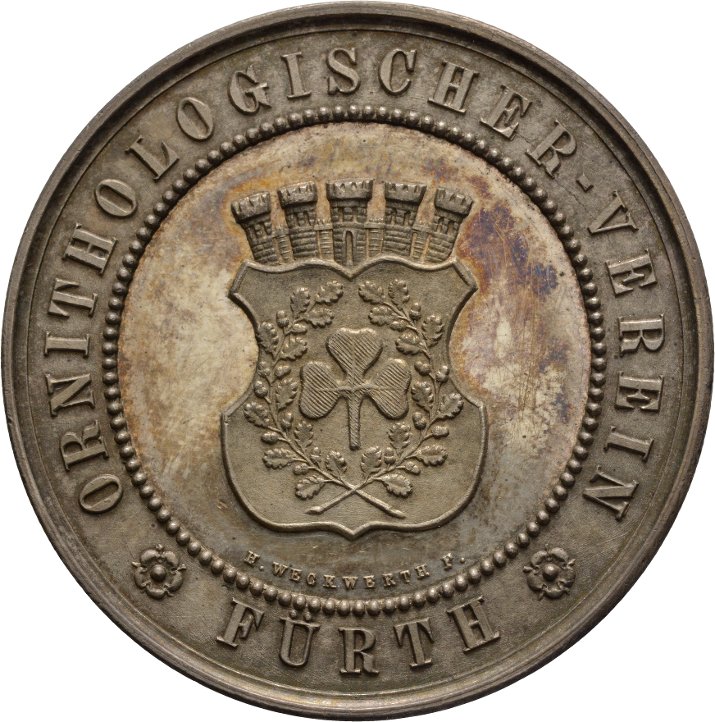 | Beschreibung | Verdienstmedaille des Ornithologischen Vereins Fürth (Vorderseite), 1864 | ||