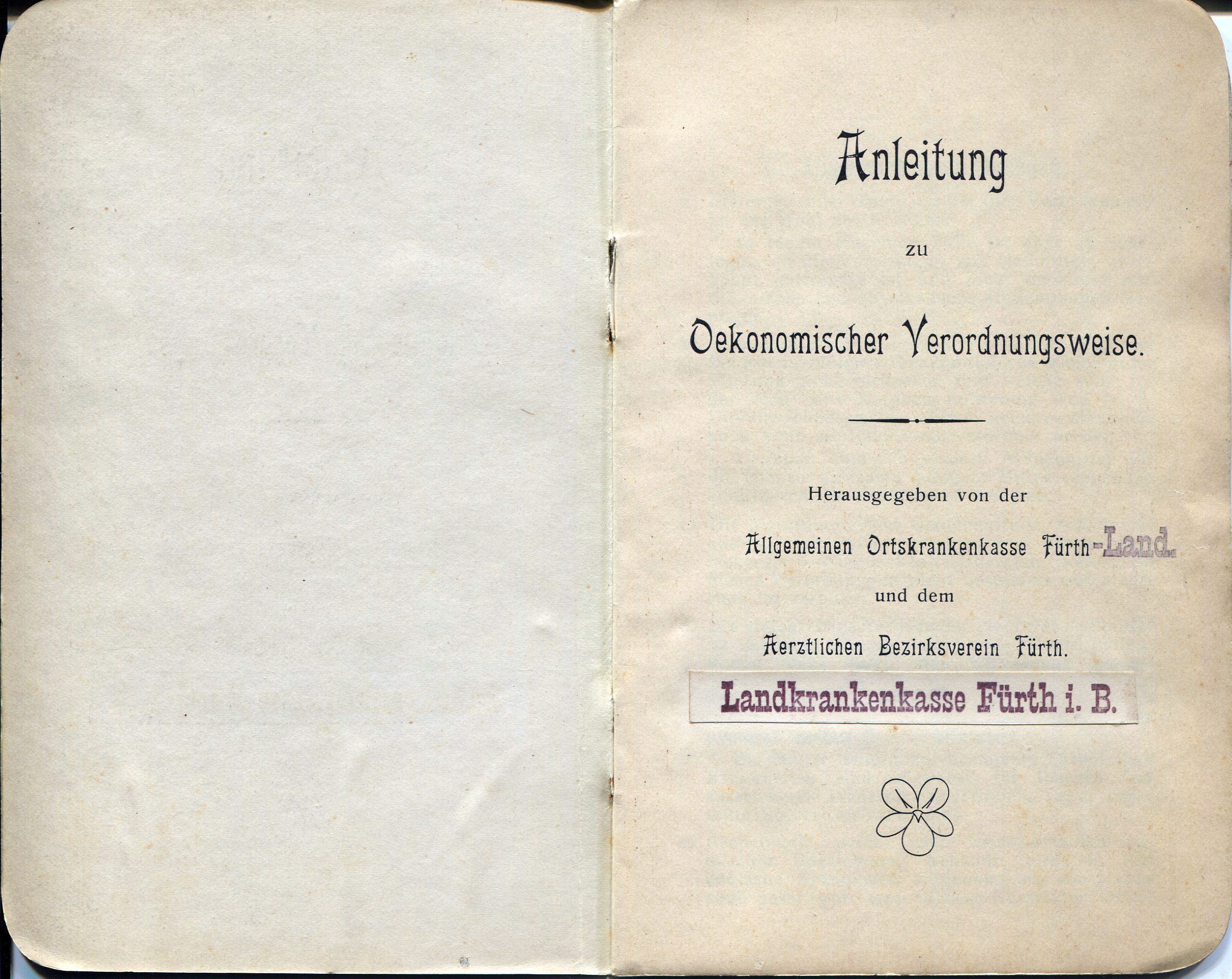 | Beschreibung | Anleitung zur Oekonomischen Verordnugsweise, Hrsg. Allgemeine Ortskrankenkasse Fürth(-Land), ca. 1920 | ||