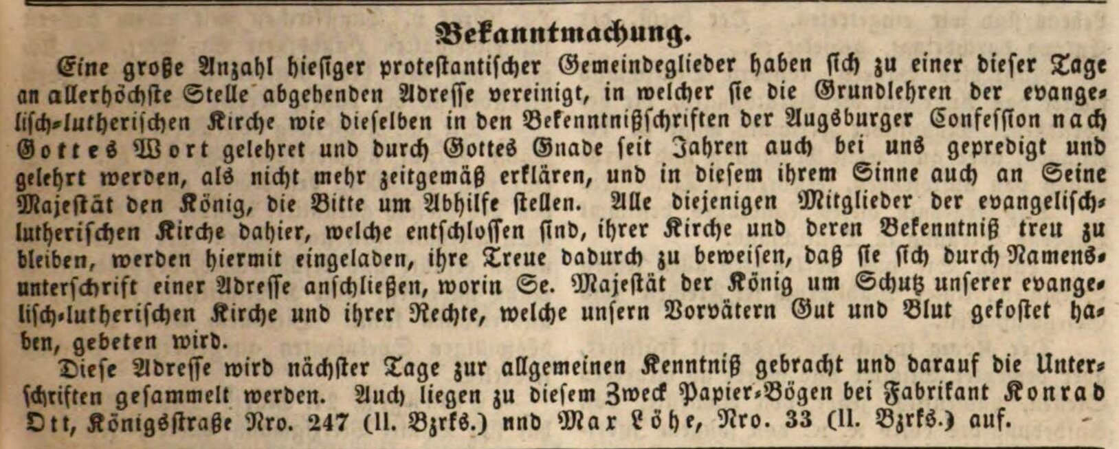 | Beschreibung | Unterschriftenaktion bei Konrad Ott und Maximilian Löhe, März 1848 | ||