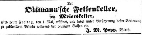 | Dateiinfo (Bild-Unterschrift und Info-Box, automatisch erstellt) | Werbeanzeige "Der Ottmann'sche Felsenkeller, sog. Meierskeller", Mai 1857 Lizenz: NoC-NC 1.0 | ||