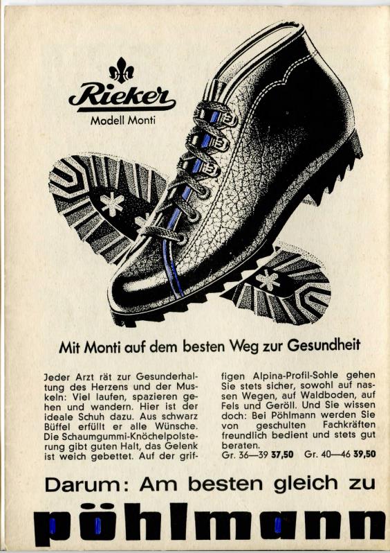 | Dateiinfo (Bild-Unterschrift und Info-Box, automatisch erstellt) | Werbung vom Schuhhaus Pöhlmann in der Schülerzeitung Die Pennalen Nr. 5 1965 Urheber: Schuhhaus Pöhlmann<br><br>Lizenz: CC BY-SA 3.0 | ||
