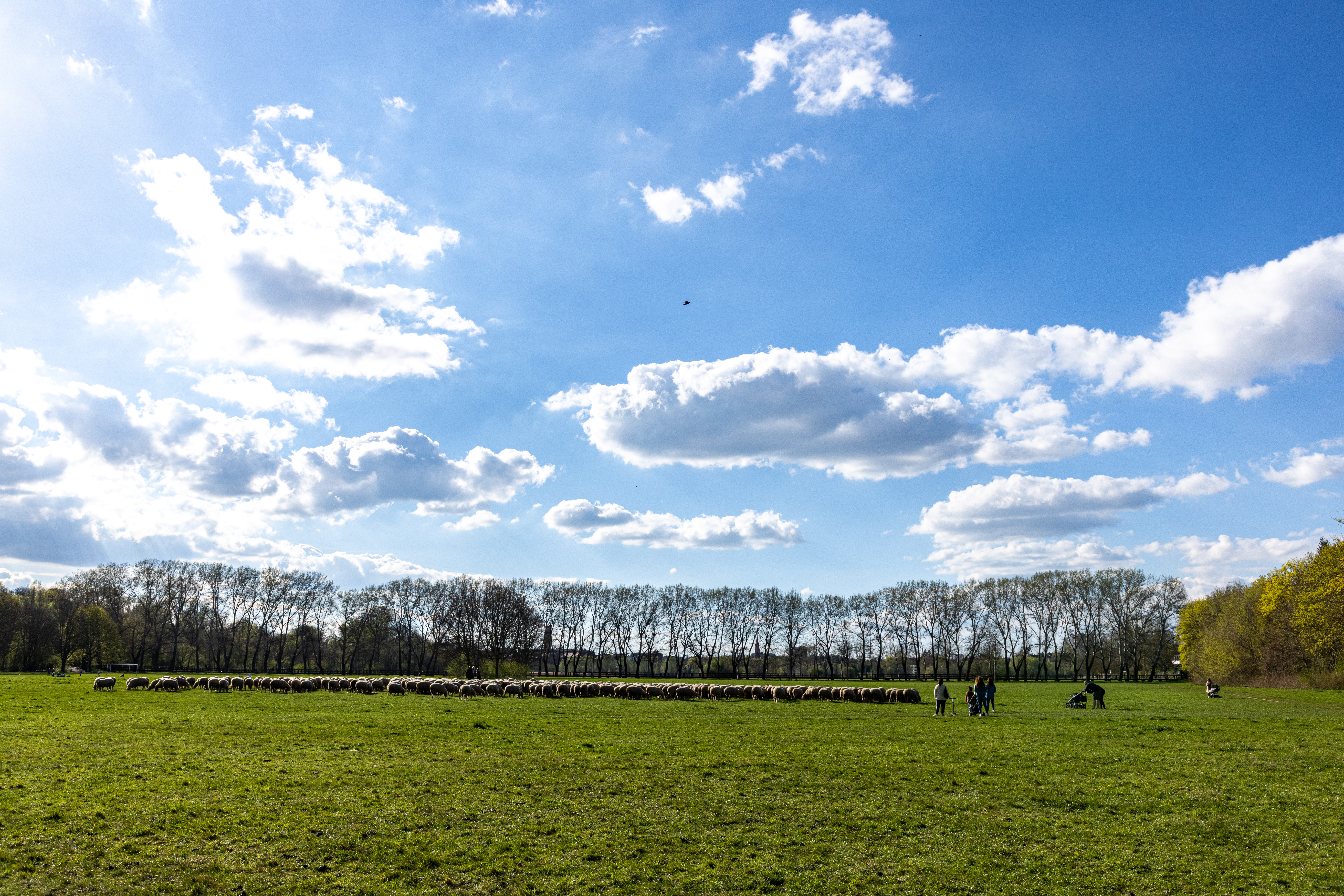 | Beschreibung | Der Pappelsteig im Wiesengrund mit Schafherde und Schäfer, April 2022 | ||