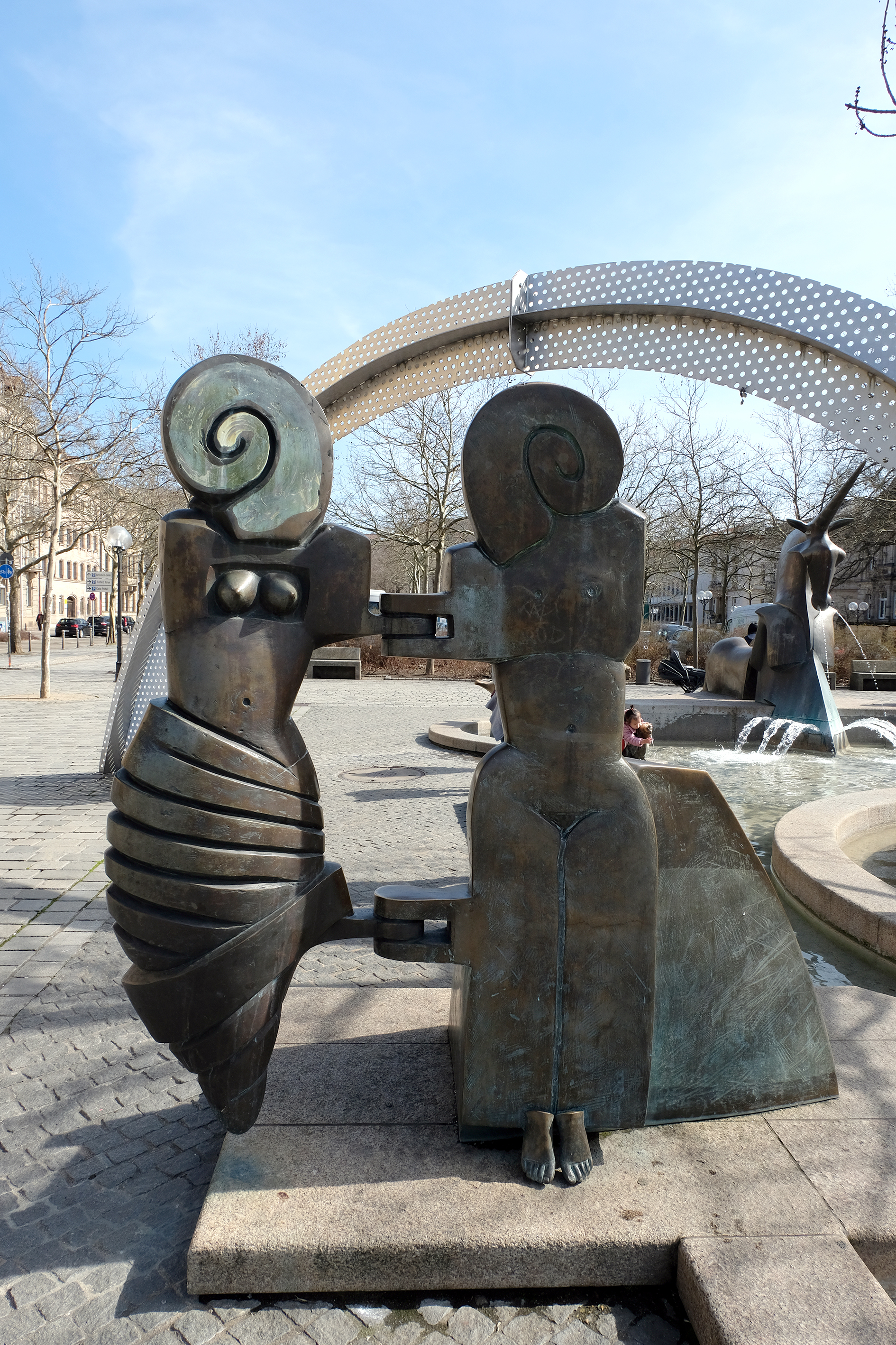 | Beschreibung | Details vom Paradiesbrunnen, Lilith und Eva, an der Dr.-Max-Grundig-Anlage, 2018 | ||