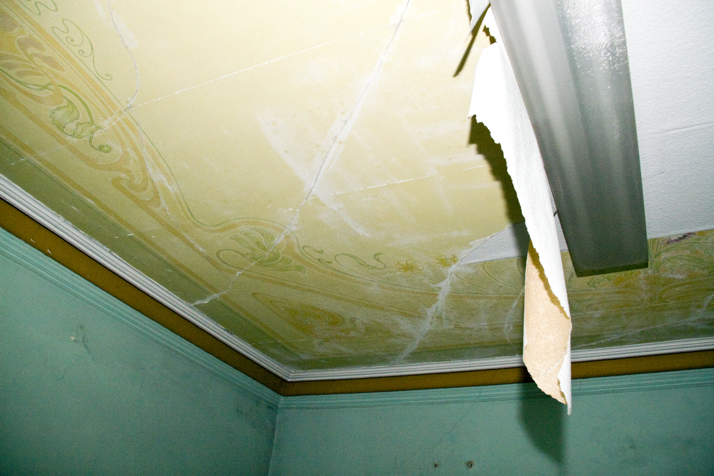 | Beschreibung | Die alte Deckenbemalung unter der Tapete ist noch erhalten. | ||
