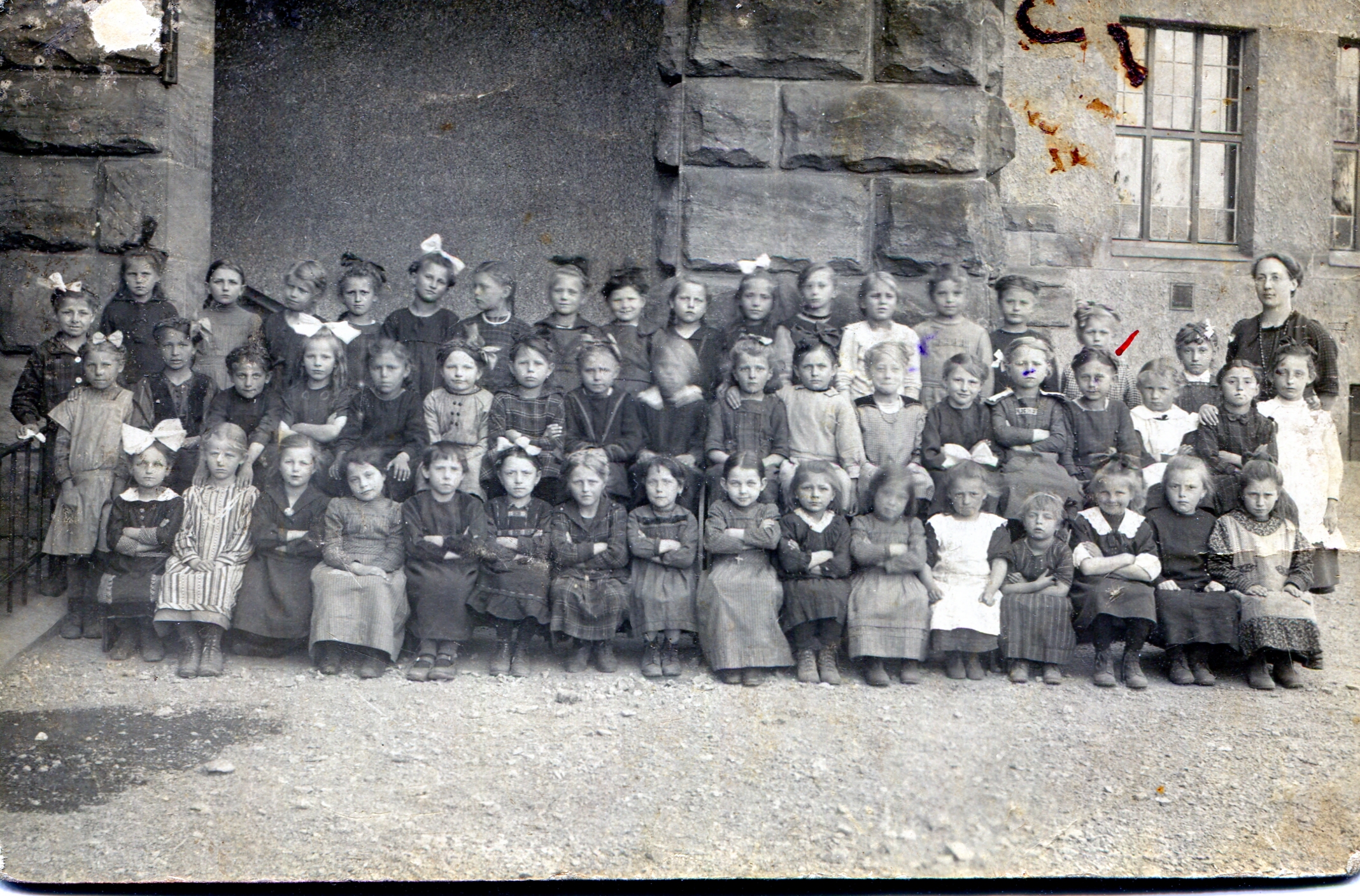 | Dateiinfo (Bild-Unterschrift und Info-Box, automatisch erstellt) | Klassenaufnahme am Pestalozzischulhaus von 16.6.1921. Mit meiner Mutter Käti Fischer (2. Reihe von ... Klassenaufnahme am Pestalozzischulhaus von 16.6.1921. Mit meiner Mutter Käti Fischer (2. Reihe von oben 4. v.l. rote Markierung) wohnhaft im Schwarzen Adler.<br>Urheber: unbekannt<br><br>Lizenz: CC BY-SA 3.0 | ||
