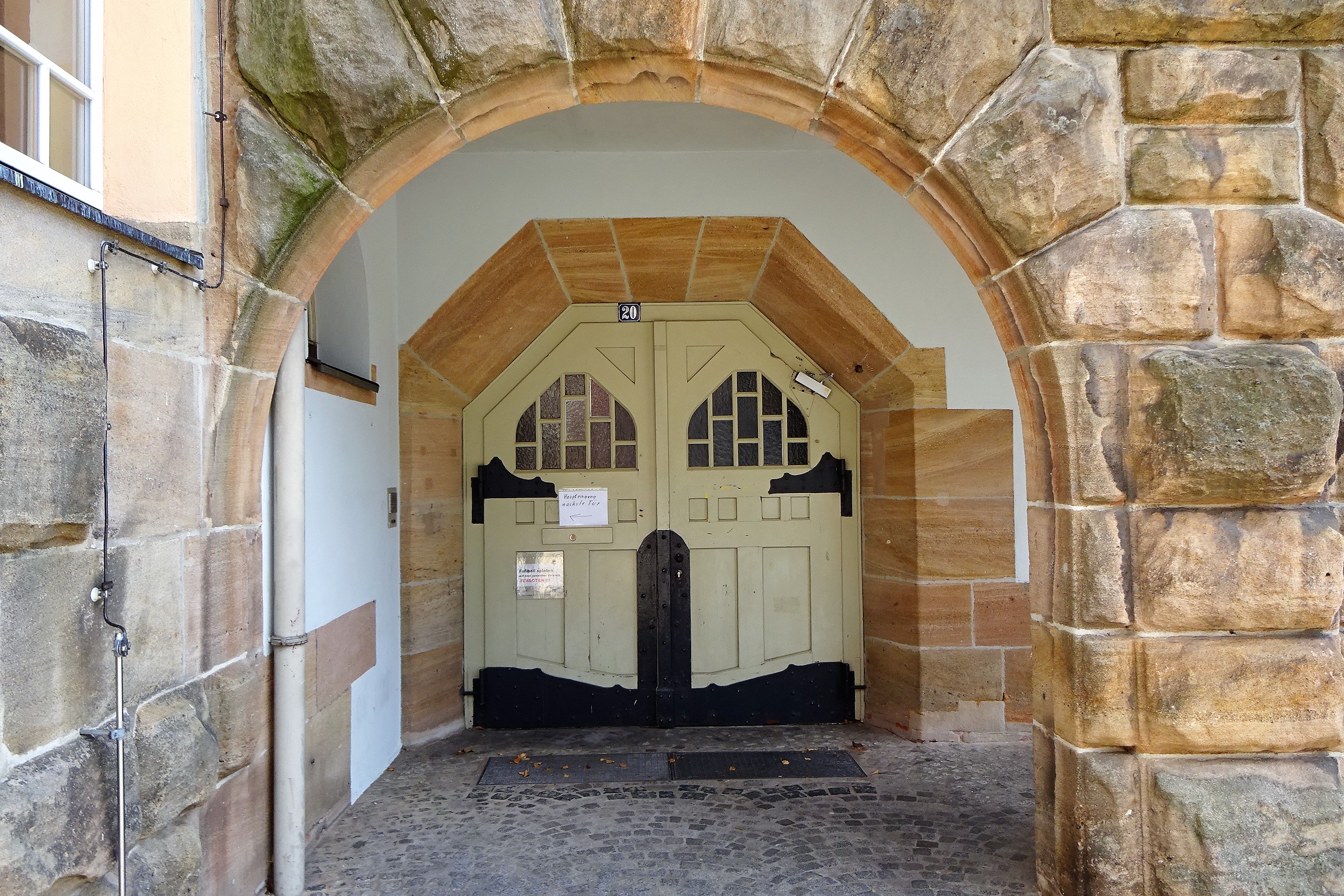 | Beschreibung | Pesta Schulhaus früherer Zugang Haus Nr. 20, im Juni 2020 | ||