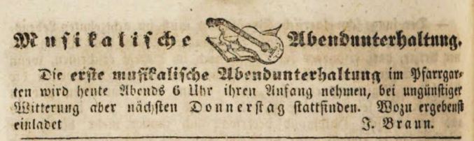 | Beschreibung | Werbeannonce für den Pfarrgarten, Mai 1841 | ||