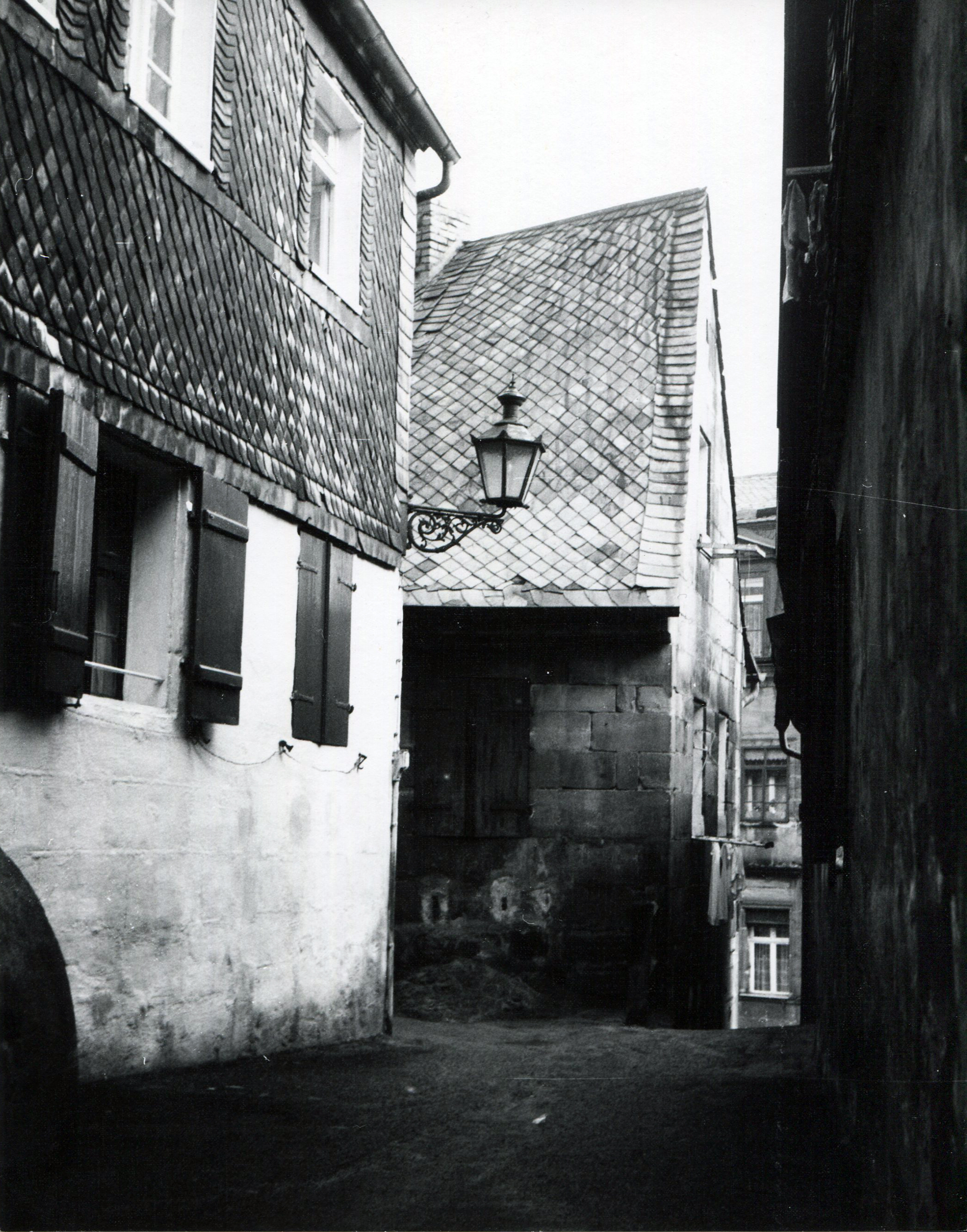 | Beschreibung | Blick auf Pfarrgasse 5 und Rückseite von Unterer Fischerstr. 11 nebst Treppenabgang | ||