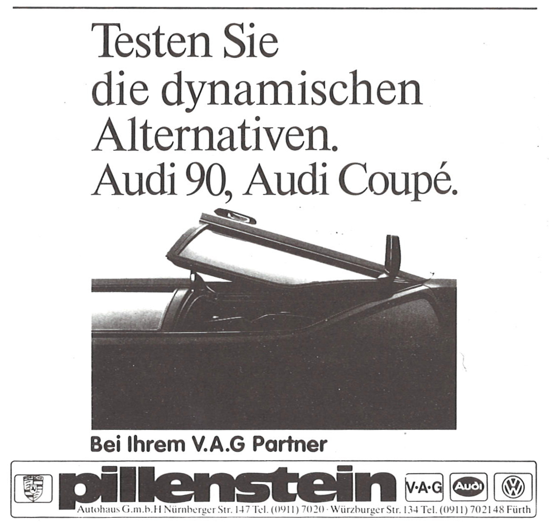 | Dateiinfo (Bild-Unterschrift und Info-Box, automatisch erstellt) | historische Werbung der Firma Pillenstein von 1985 Urheber: Autohaus Pillenstein<br><br>Lizenz: CC BY-SA 3.0 | ||